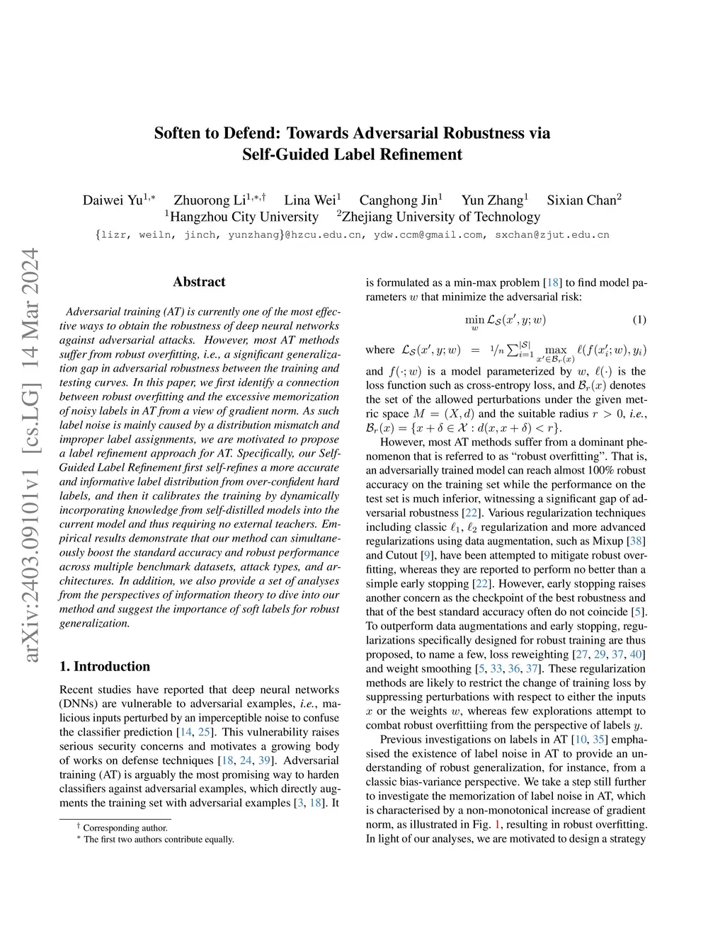 Soften to Defend: Towards Adversarial Robustness via Self-Guided Label