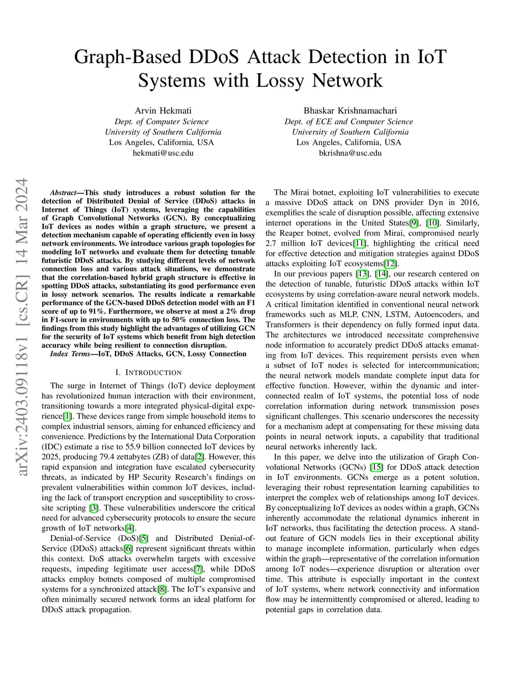 Graph-Based DDoS Attack Detection in IoT Systems with Lossy Network