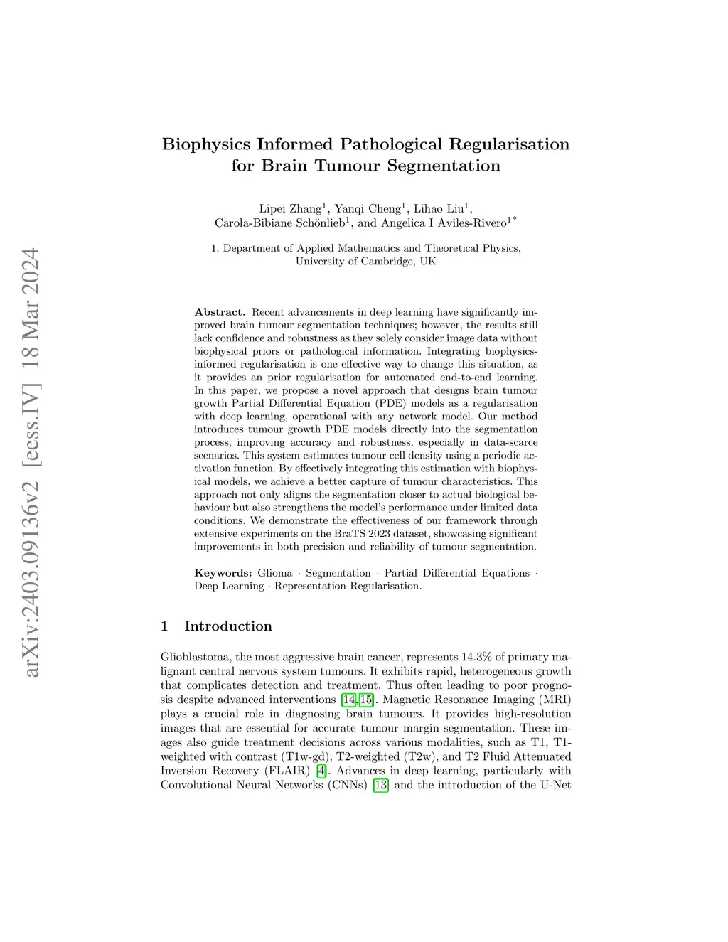 Biophysics Informed Pathological Regularisation for Brain Tumour