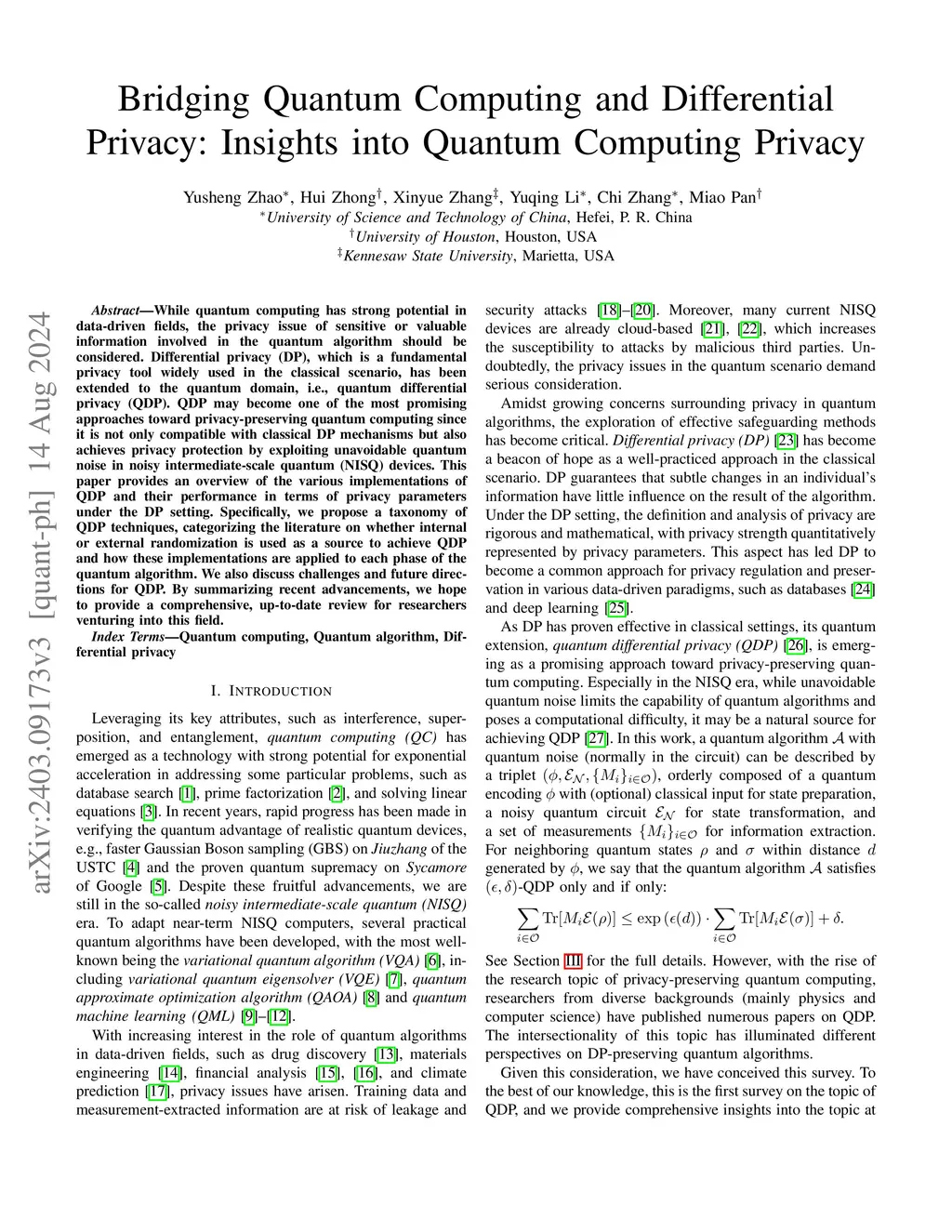 Bridging Quantum Computing and Differential Privacy: Insights into
