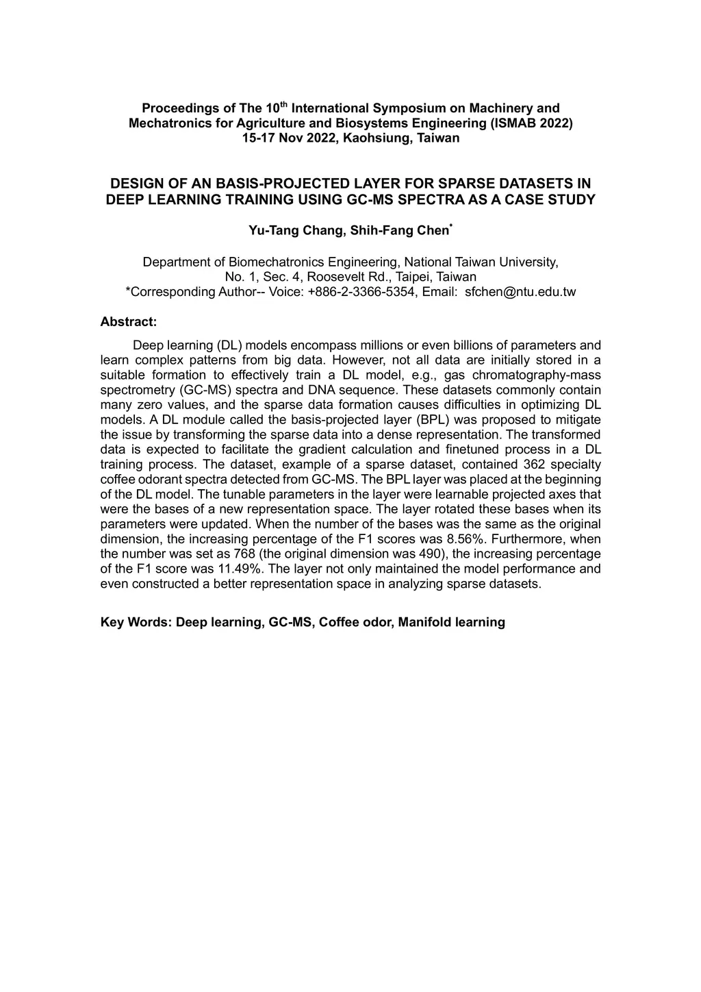 Deep learning (DL) models encompass millions or even billions of parameters and learn complex patterns from big data. However, not all data are initially stored in a suitable formation to effectively train a DL model, e.g., gas chromatography-mass spectrometry (GC-MS) spectra and DNA sequence. These datasets commonly contain many zero values, and the sparse data formation causes difficulties in optimizing DL models. A DL module called the basis-projected layer (BPL) was proposed to mitigate the issue by transforming the sparse data into a dense representation. The transformed data is expected to facilitate the gradient calculation and finetuned process in a DL training process. The dataset, example of a sparse dataset, contained 362 specialty coffee odorant spectra detected from GC-MS. The BPL layer was placed at the beginning of the DL model. The tunable parameters in the layer were learnable projected axes that were the bases of a new representation space. The layer rotated these bases when its parameters were updated. When the number of the bases was the same as the original dimension, the increasing percentage of the F1 scores was 8.56%. Furthermore, when the number was set as 768 (the original dimension was 490), the increasing percentage of the F1 score was 11.49%. The layer not only maintained the model performance and even constructed a better representation space in analyzing sparse datasets.