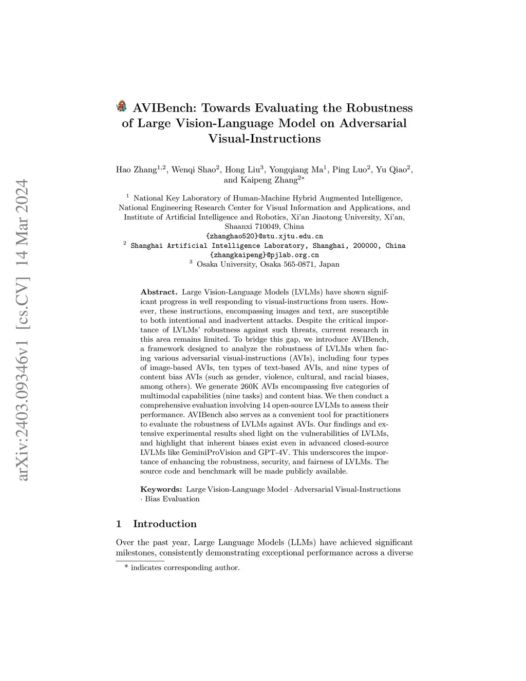 Large Vision-Language Models (LVLMs) have shown significant progress in responding well to visual-instructions from users. However, these instructions, encompassing images and text, are susceptible to both intentional and inadvertent attacks. Despite the critical importance of LVLMs' robustness against such threats, current research in this area remains limited. To bridge this gap, we introduce B-AVIBench, a framework designed to analyze the robustness of LVLMs when facing various Black-box Adversarial Visual-Instructions (B-AVIs), including four types of image-based B-AVIs, ten types of text-based B-AVIs, and nine types of content bias B-AVIs (such as gender, violence, cultural, and racial biases, among others). We generate 316K B-AVIs encompassing five categories of multimodal capabilities (ten tasks) and content bias. We then conduct a comprehensive evaluation involving 14 open-source LVLMs to assess their performance. B-AVIBench also serves as a convenient tool for practitioners to evaluate the robustness of LVLMs against B-AVIs. Our findings and extensive experimental results shed light on the vulnerabilities of LVLMs, and highlight that inherent biases exist even in advanced closed-source LVLMs like GeminiProVision and GPT-4V. This underscores the importance of enhancing the robustness, security, and fairness of LVLMs. The source code and benchmark are available atthis https URL.