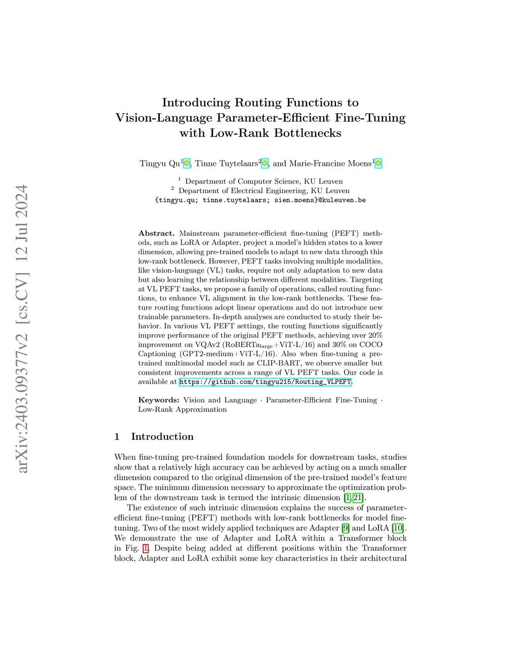Introducing Routing Functions to Vision-Language Parameter-Efficient