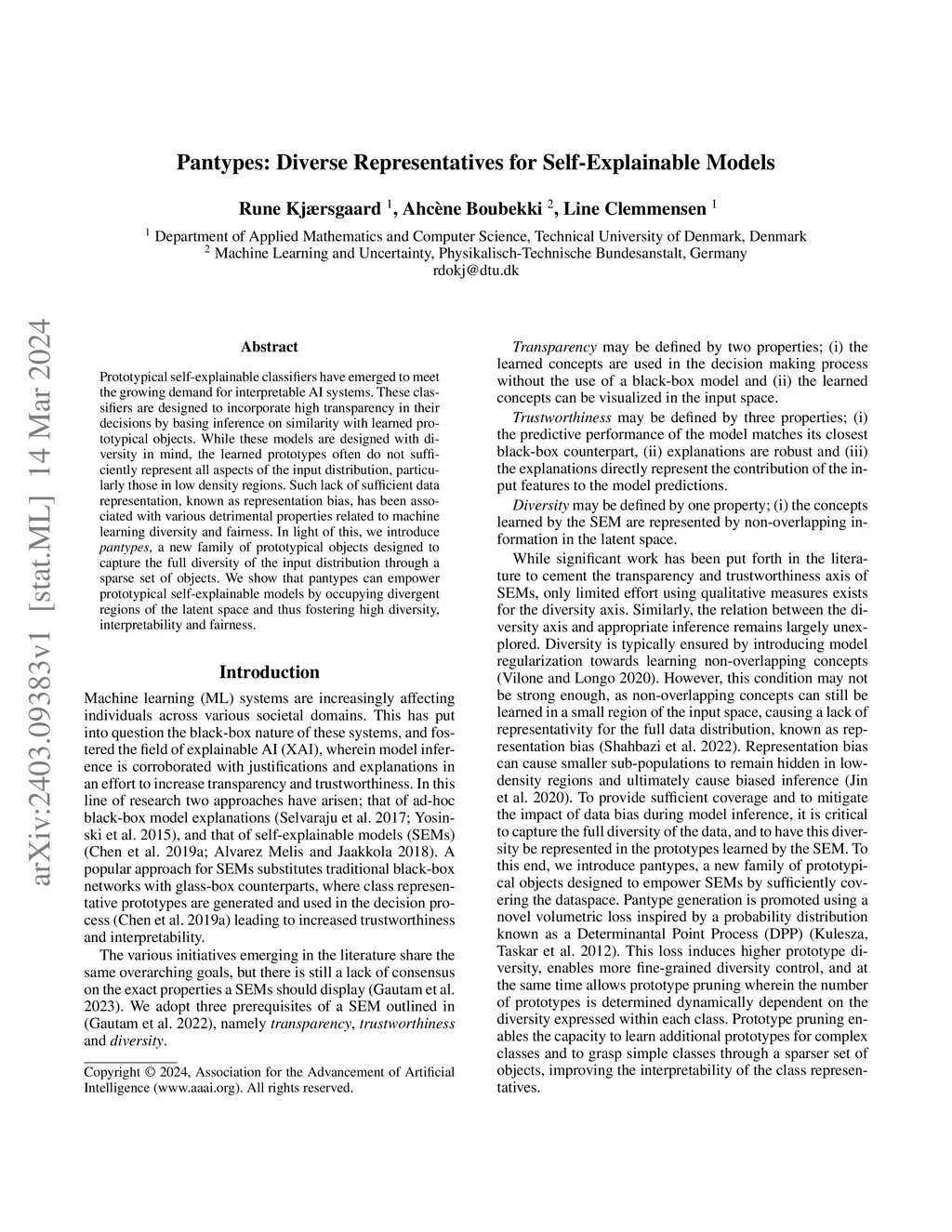 Prototypical self-explainable classifiers have emerged to meet the growing demand for interpretable AI systems. These classifiers are designed to incorporate high transparency in their decisions by basing inference on similarity with learned prototypical objects. While these models are designed with diversity in mind, the learned prototypes often do not sufficiently represent all aspects of the input distribution, particularly those in low density regions. Such lack of sufficient data representation, known as representation bias, has been associated with various detrimental properties related to machine learning diversity and fairness. In light of this, we introduce pantypes, a new family of prototypical objects designed to capture the full diversity of the input distribution through a sparse set of objects. We show that pantypes can empower prototypical self-explainable models by occupying divergent regions of the latent space and thus fostering high diversity, interpretability and fairness.