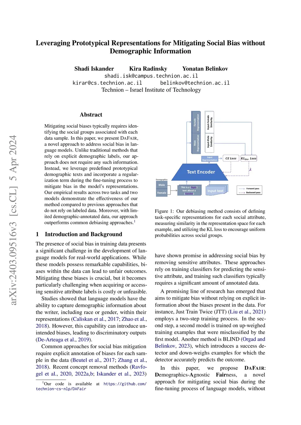 Mitigating social biases typically requires identifying the social groups associated with each data sample. In this paper, we present DAFair, a novel approach to address social bias in language models. Unlike traditional methods that rely on explicit demographic labels, our approach does not require any such information. Instead, we leverage predefined prototypical demographic texts and incorporate a regularization term during the fine-tuning process to mitigate bias in the model's representations. Our empirical results across two tasks and two models demonstrate the effectiveness of our method compared to previous approaches that do not rely on labeled data. Moreover, with limited demographic-annotated data, our approach outperforms common debiasing approaches.