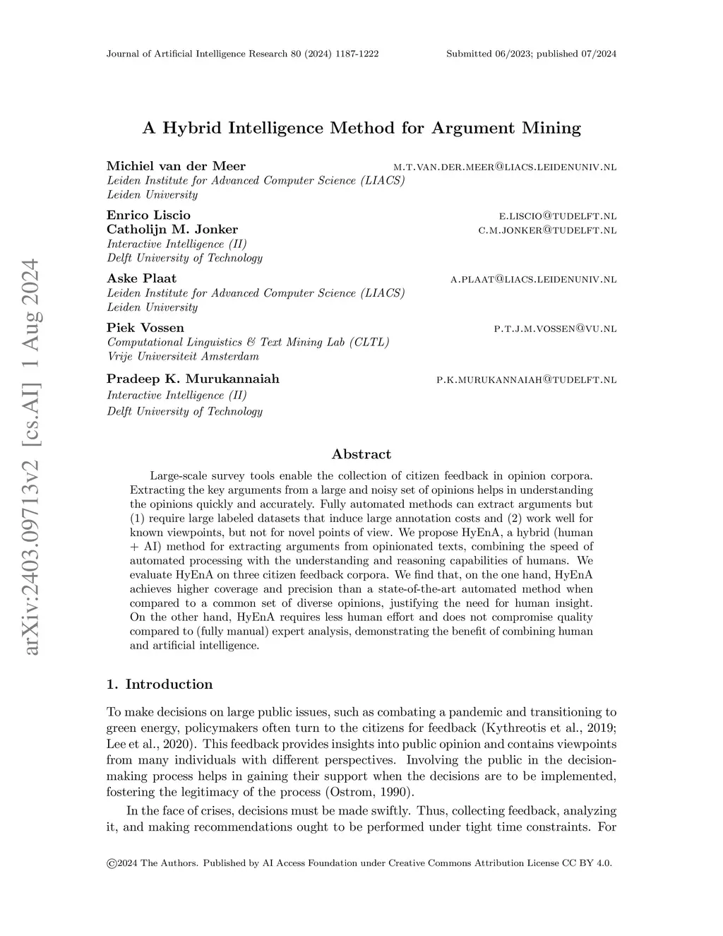 A Hybrid Intelligence Method for Argument Mining