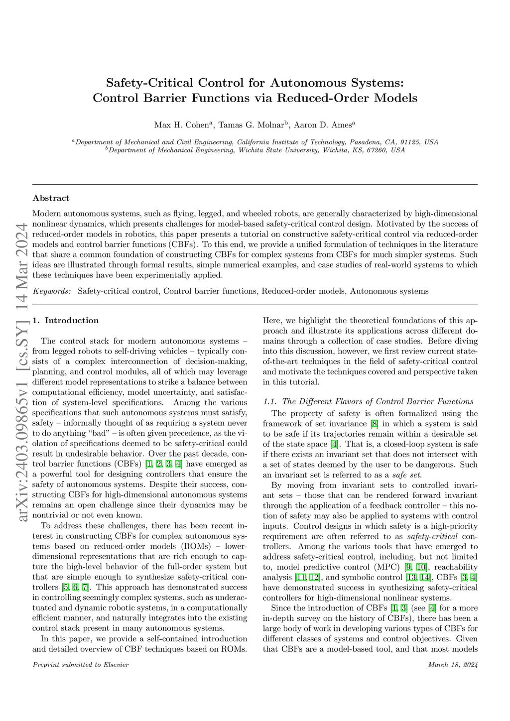 Safety-Critical Control for Autonomous Systems: Control Barrier