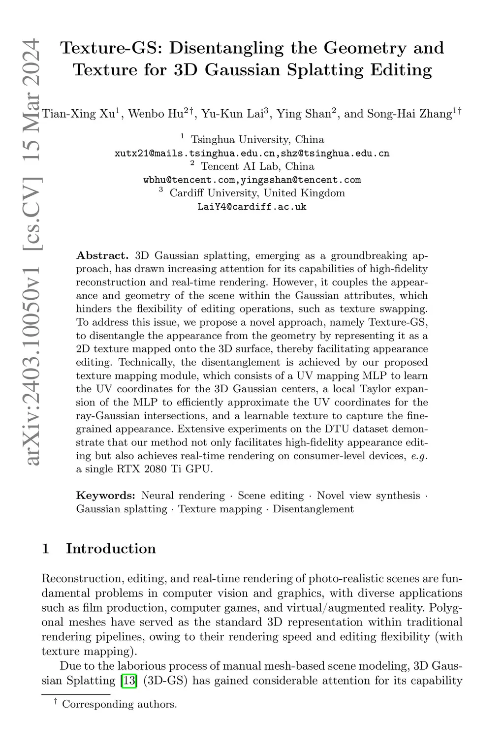 Texture-GS: Disentangling the Geometry and Texture for 3D Gaussian