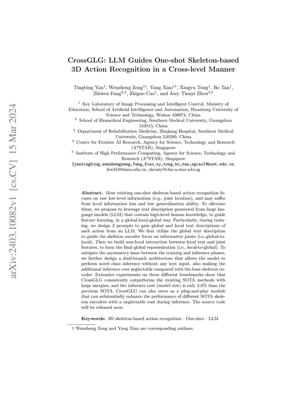 CrossGLG: LLM Guides One-shot Skeleton-based 3D Action Recognition in a