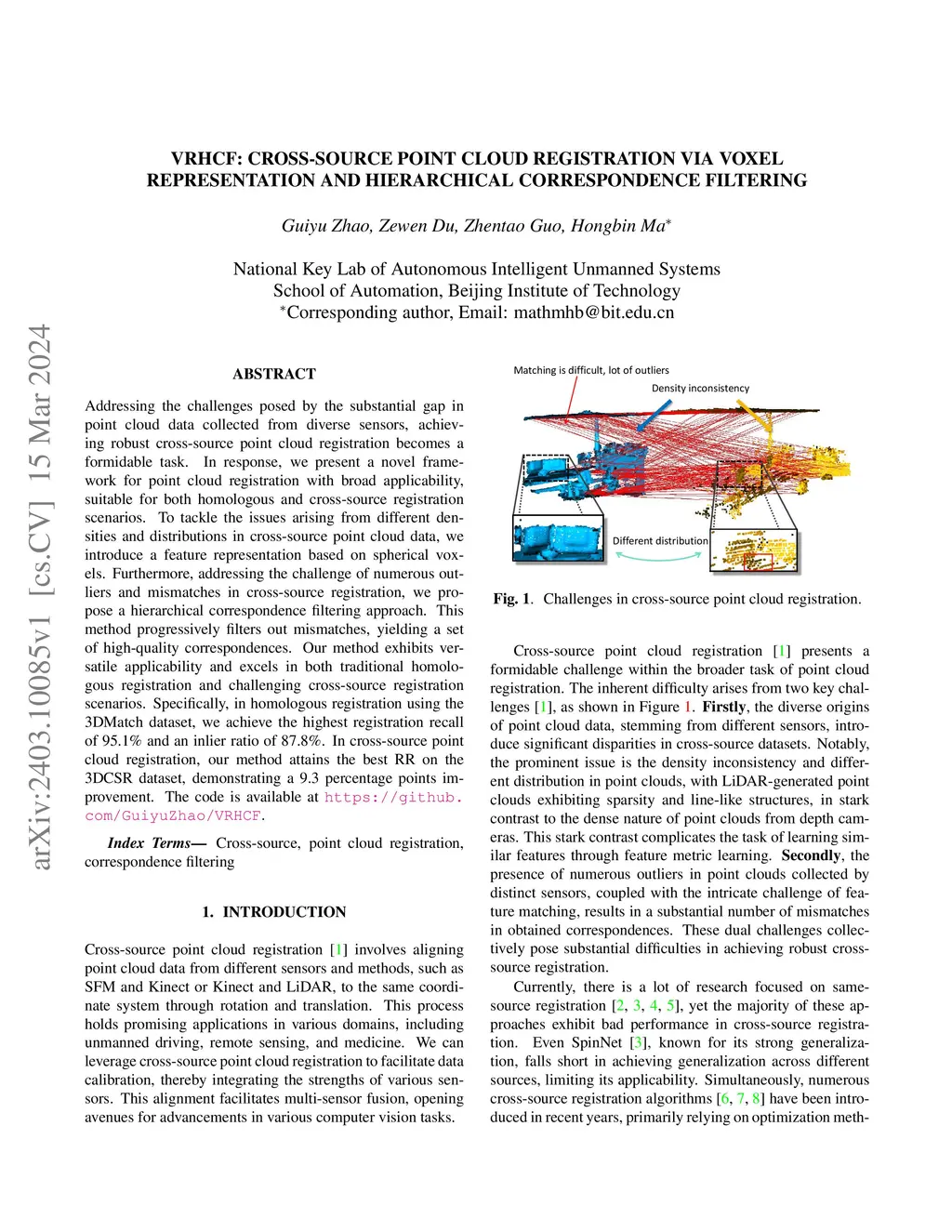 VRHCF: Cross-Source Point Cloud Registration via Voxel Representation