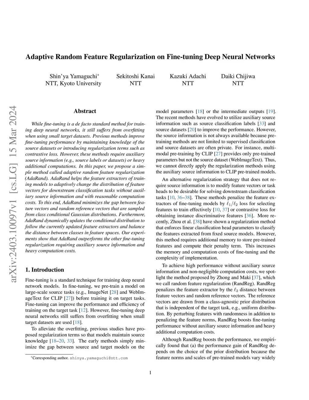 Adaptive Random Feature Regularization on Fine-tuning Deep Neural