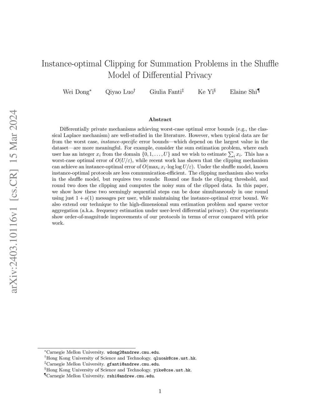 Instance-optimal Clipping for Summation Problems in the Shuffle Model of