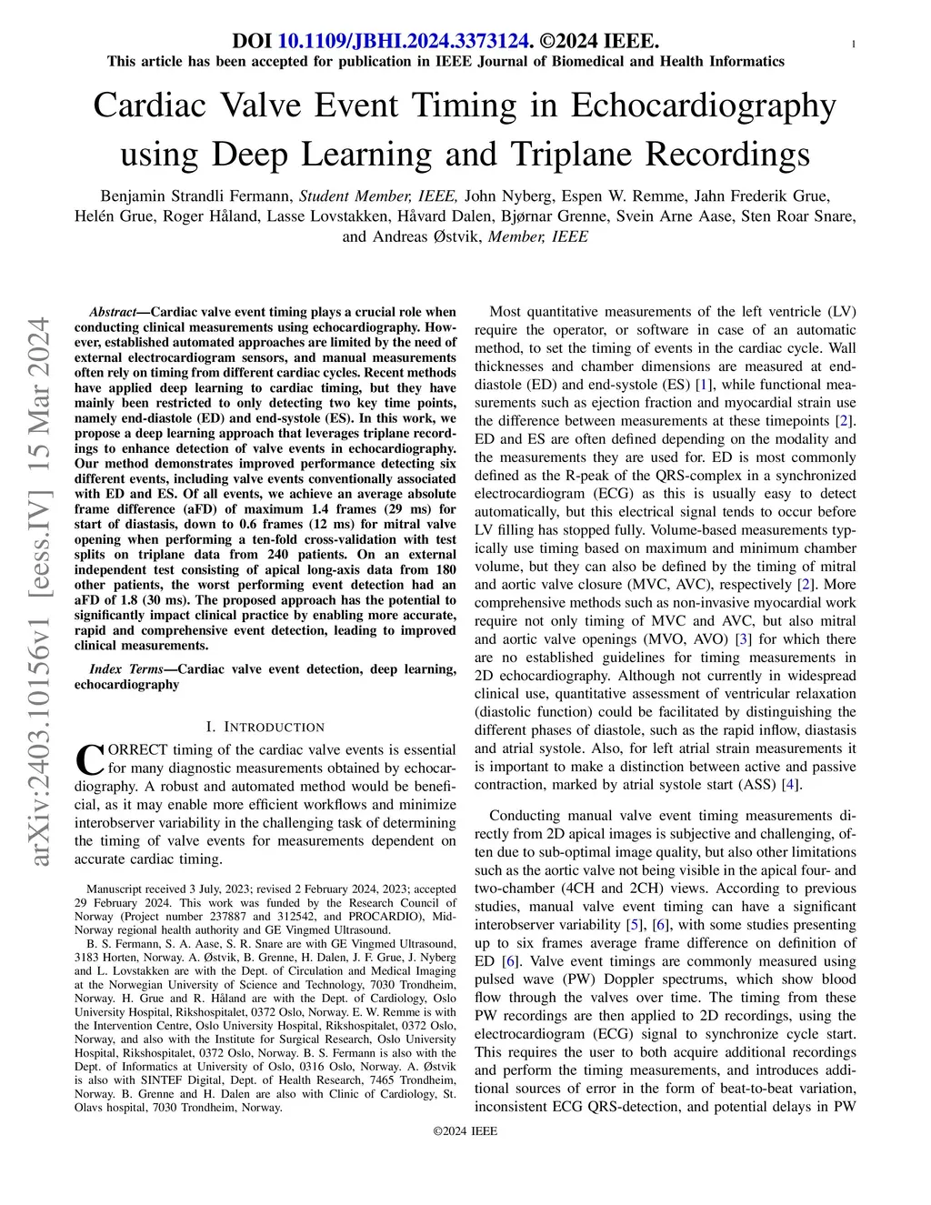 Cardiac valve event timing plays a crucial role when conducting clinical measurements using echocardiography. However, established automated approaches are limited by the need of external electrocardiogram sensors, and manual measurements often rely on timing from different cardiac cycles. Recent methods have applied deep learning to cardiac timing, but they have mainly been restricted to only detecting two key time points, namely end-diastole (ED) and end-systole (ES). In this work, we propose a deep learning approach that leverages triplane recordings to enhance detection of valve events in echocardiography. Our method demonstrates improved performance detecting six different events, including valve events conventionally associated with ED and ES. Of all events, we achieve an average absolute frame difference (aFD) of maximum 1.4 frames (29 ms) for start of diastasis, down to 0.6 frames (12 ms) for mitral valve opening when performing a ten-fold cross-validation with test splits on triplane data from 240 patients. On an external independent test consisting of apical long-axis data from 180 other patients, the worst performing event detection had an aFD of 1.8 (30 ms). The proposed approach has the potential to significantly impact clinical practice by enabling more accurate, rapid and comprehensive event detection, leading to improved clinical measurements.