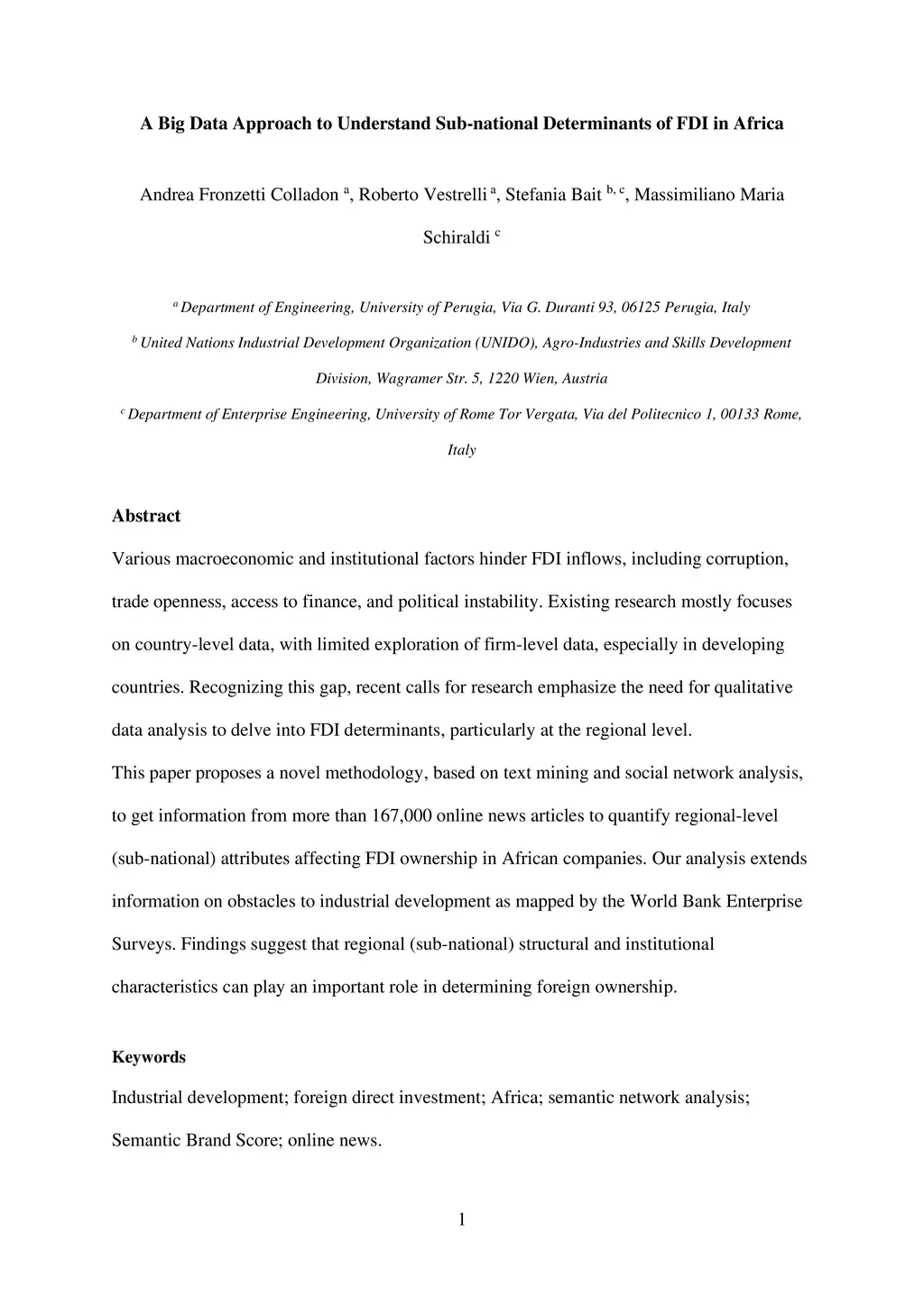 Various macroeconomic and institutional factors hinder FDI inflows, including corruption, trade openness, access to finance, and political instability. Existing research mostly focuses on country-level data, with limited exploration of firm-level data, especially in developing countries. Recognizing this gap, recent calls for research emphasize the need for qualitative data analysis to delve into FDI determinants, particularly at the regional level. This paper proposes a novel methodology, based on text mining and social network analysis, to get information from more than 167,000 online news articles to quantify regional-level (sub-national) attributes affecting FDI ownership in African companies. Our analysis extends information on obstacles to industrial development as mapped by the World Bank Enterprise Surveys. Findings suggest that regional (sub-national) structural and institutional characteristics can play an important role in determining foreign ownership.