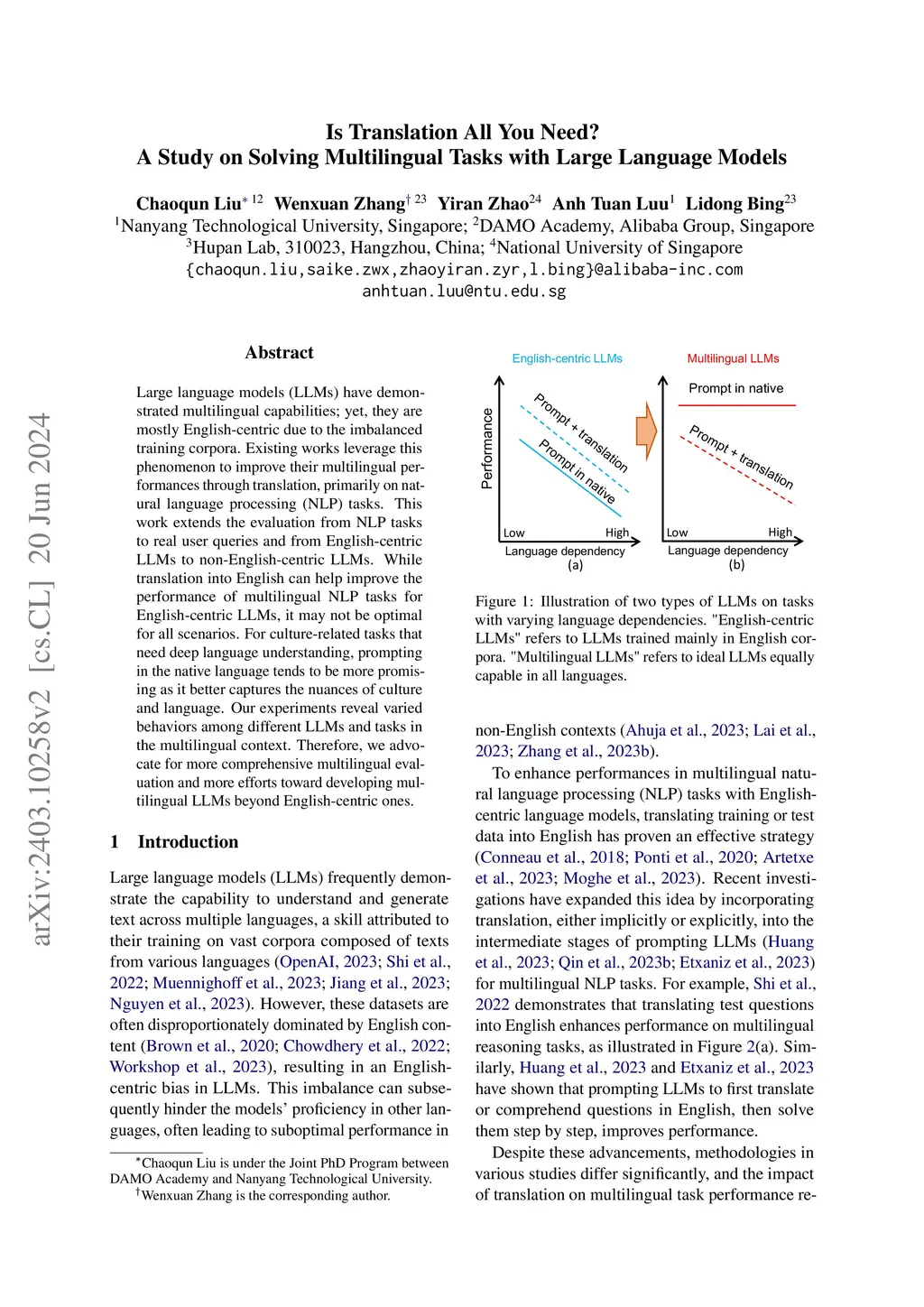 Is Translation All You Need? A Study on Solving Multilingual Tasks with Large Language Models