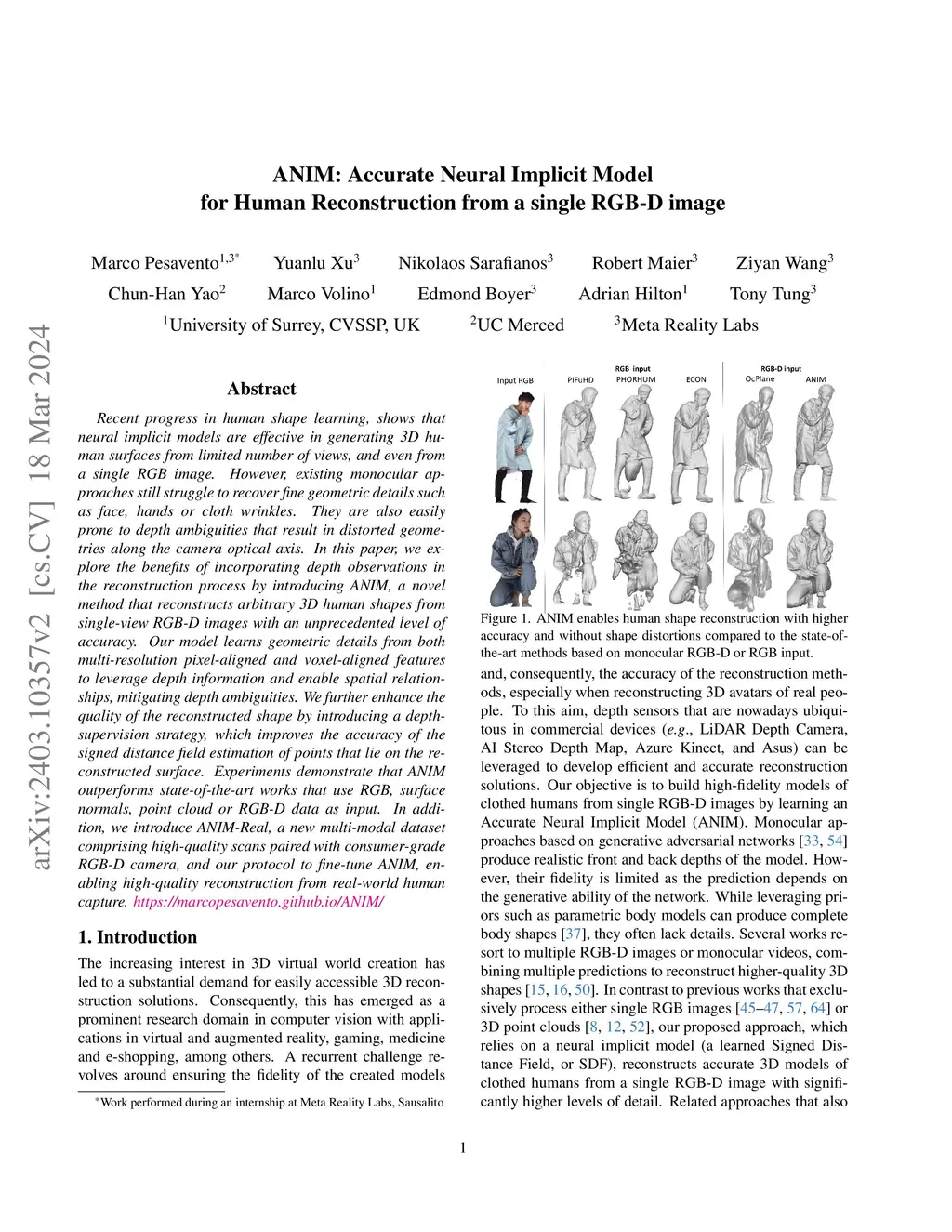 ANIM: Accurate Neural Implicit Model for Human Reconstruction from a