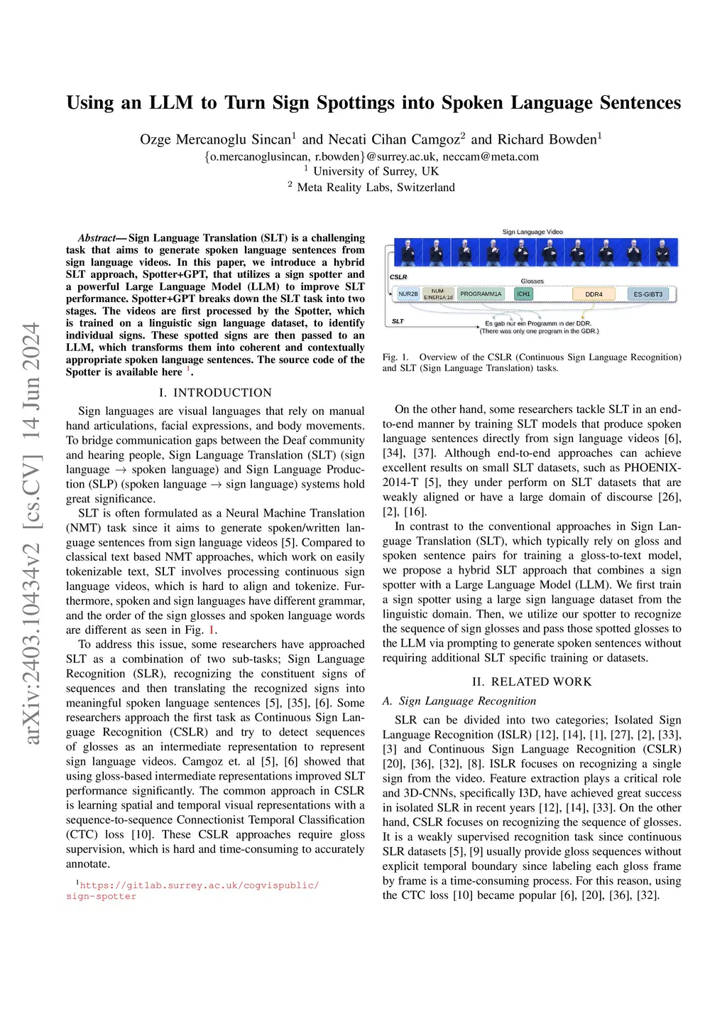 Spotter+GPT: Turning Sign Spottings into Sentences with LLMs