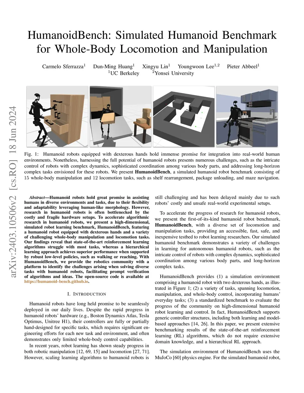 HumanoidBench: Simulated Humanoid Benchmark for Whole-Body Locomotion