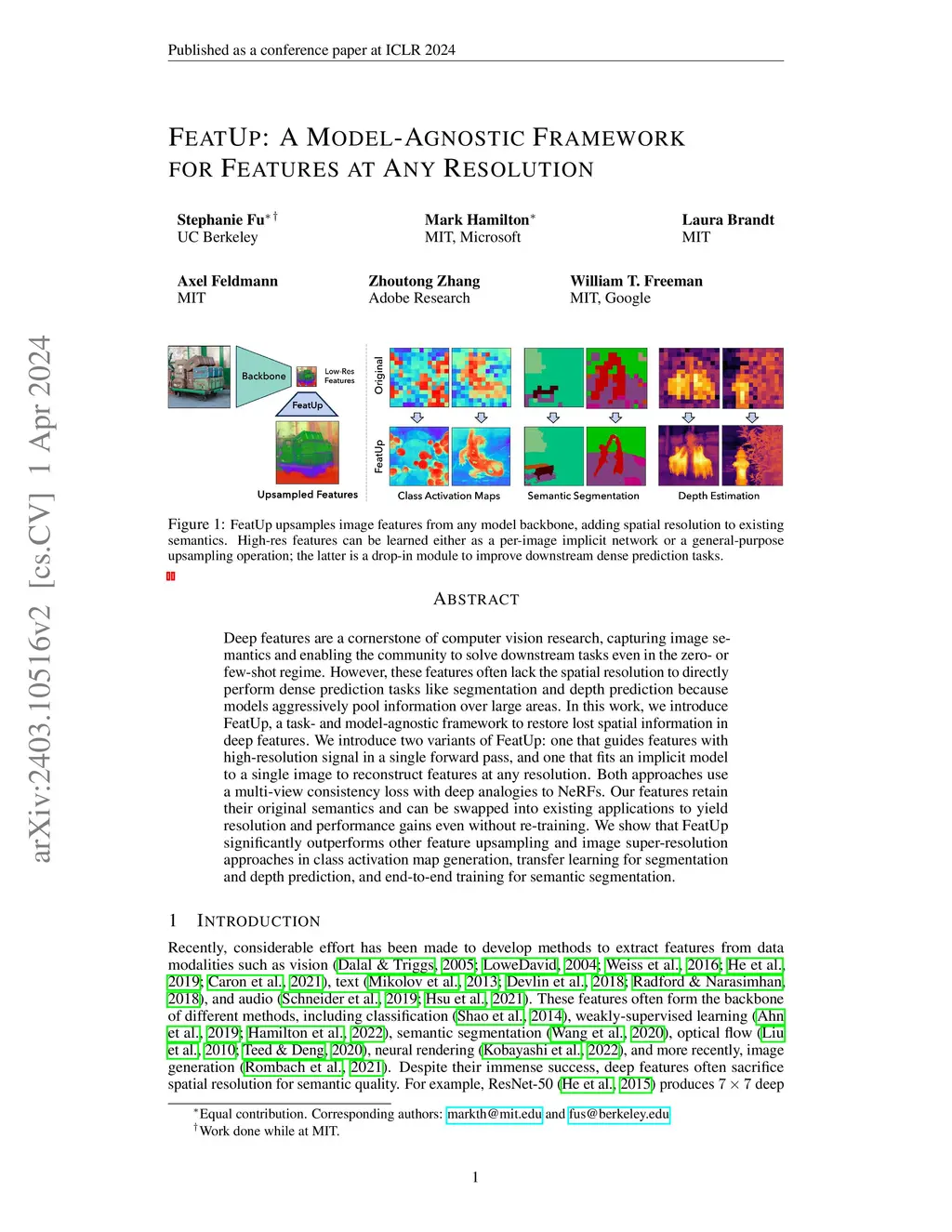 FeatUp: A Model-Agnostic Framework for Features at Any Resolution