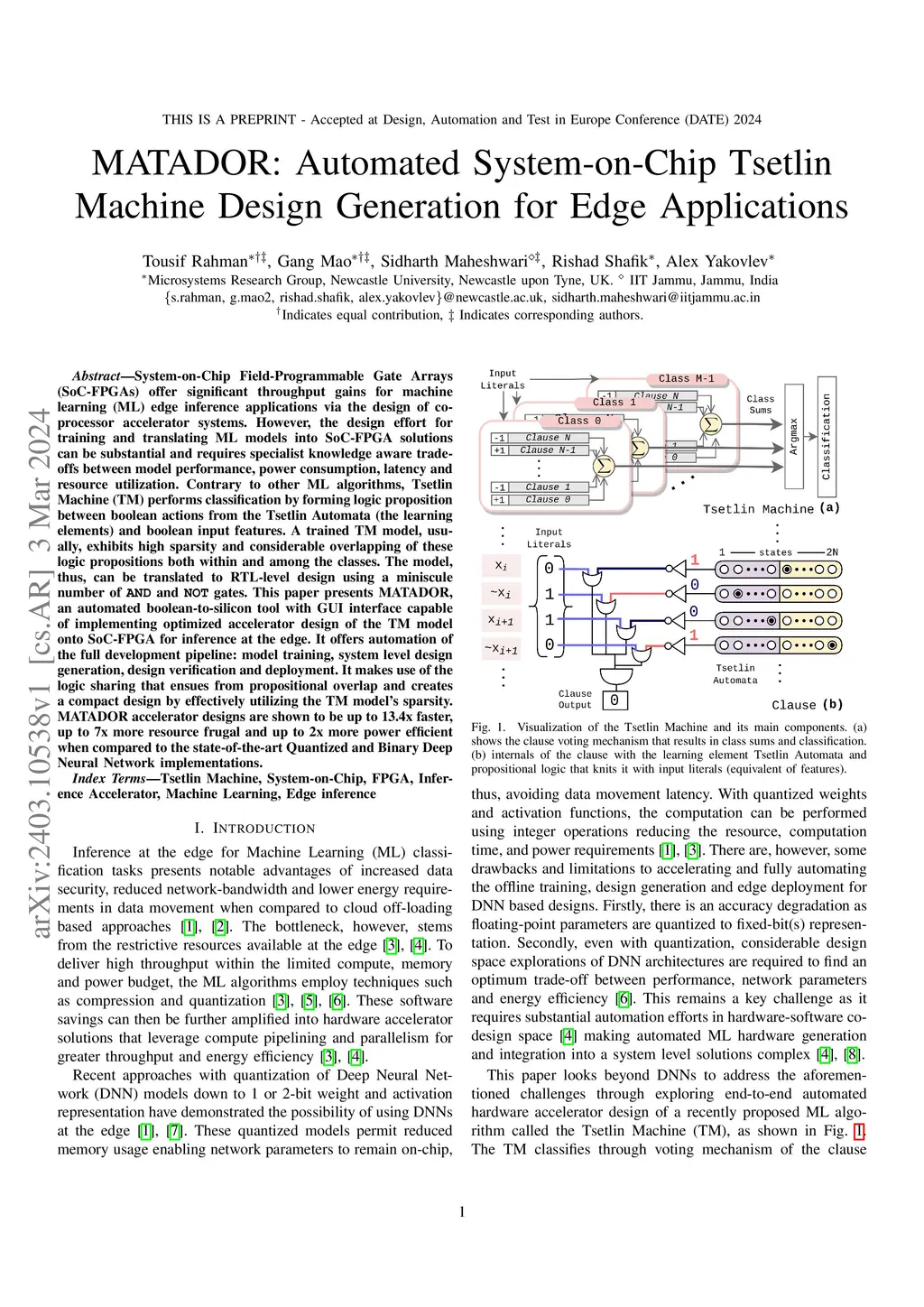 MATADOR: Automated System-on-Chip Tsetlin Machine Design Generation for