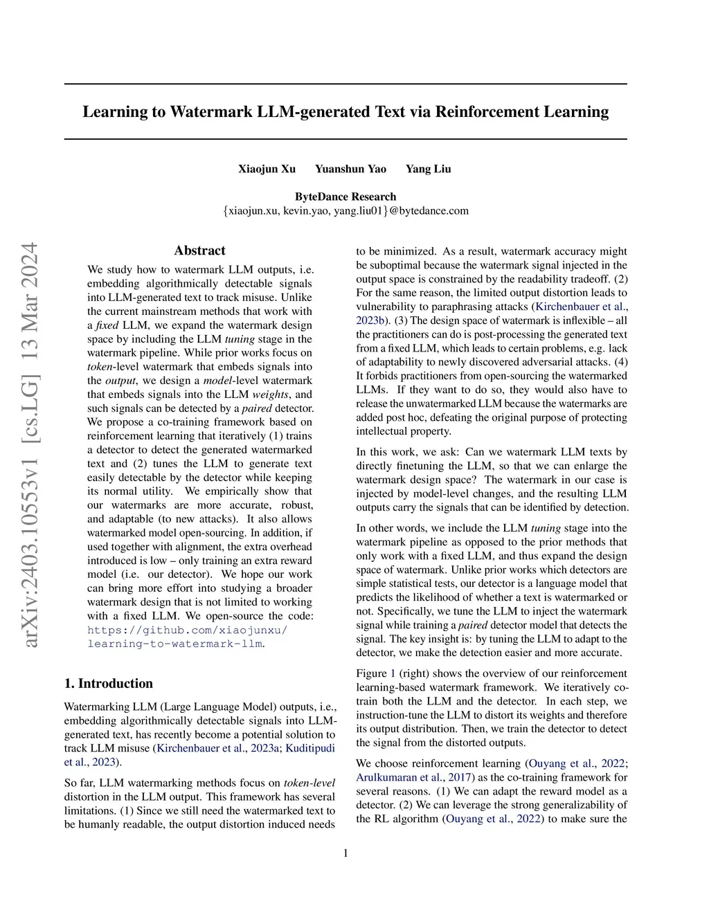 Learning to Watermark LLM-generated Text via Reinforcement Learning