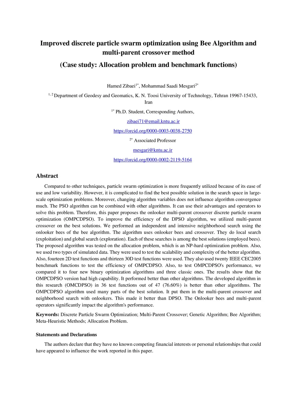 Improved discrete particle swarm optimization using Bee Algorithm and