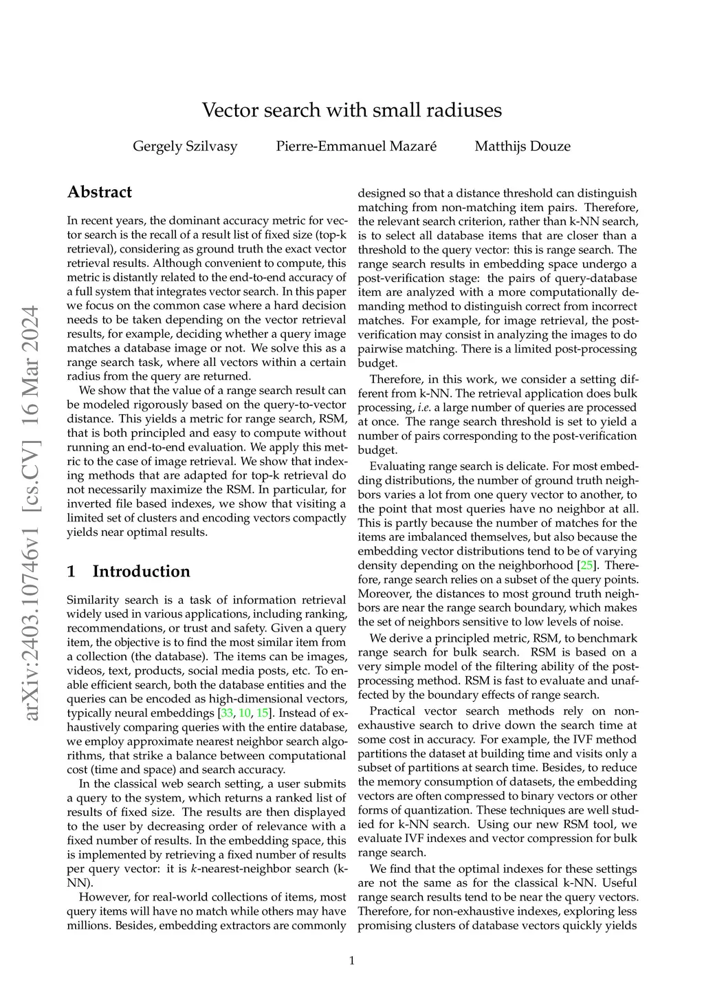 Vector search with small radiuses