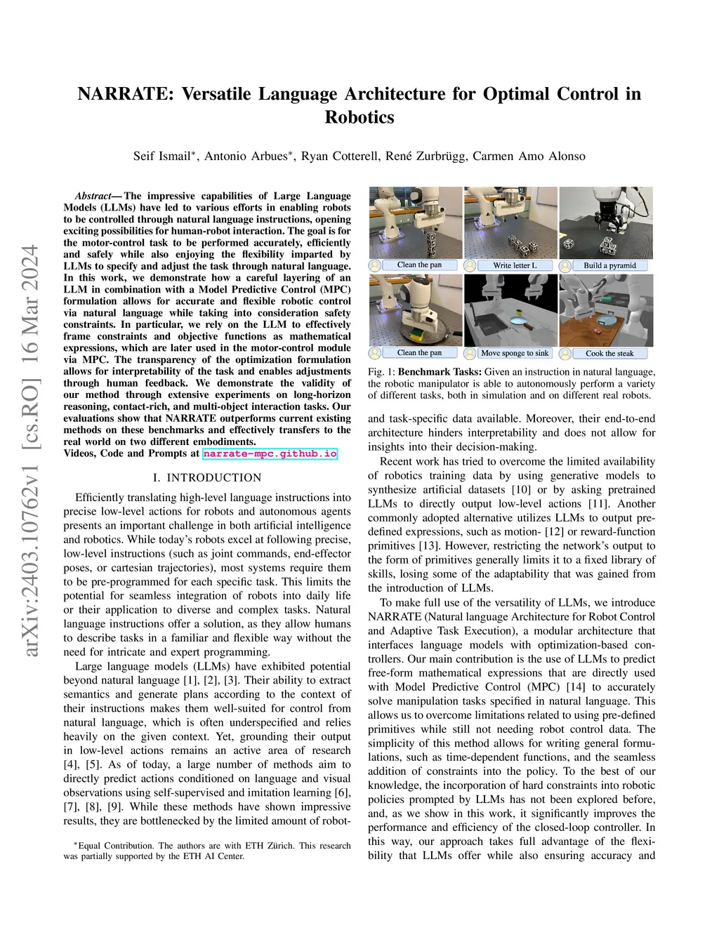 NARRATE: Versatile Language Architecture for Optimal Control in Robotics