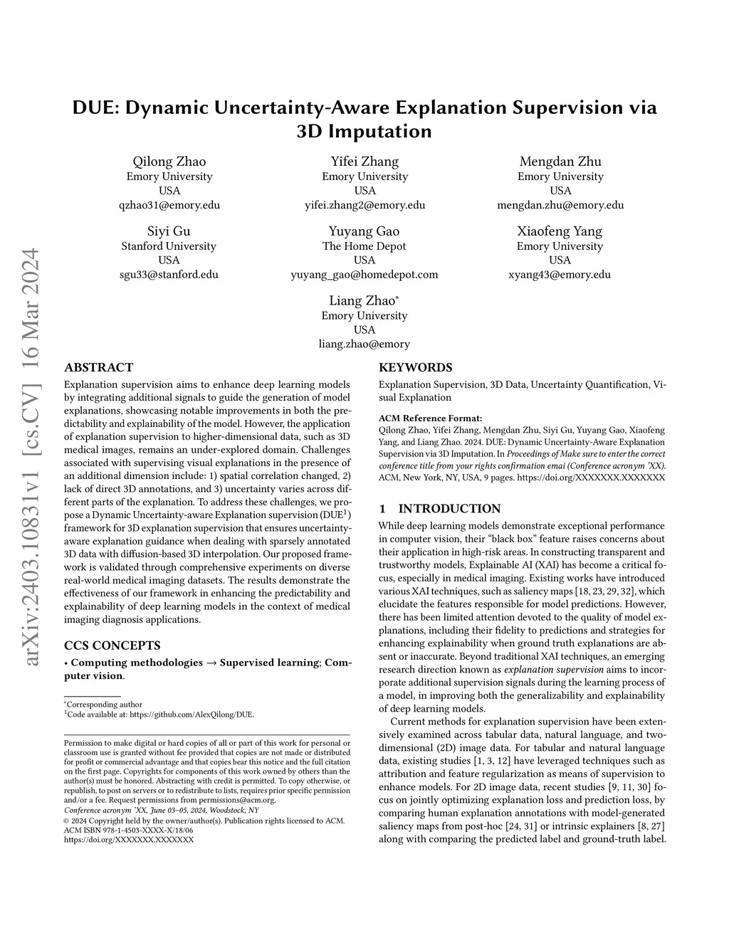 DUE: Dynamic Uncertainty-Aware Explanation Supervision via 3D Imputation