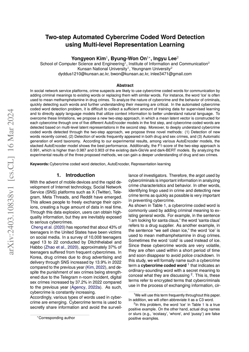 Two-step Automated Cybercrime Coded Word Detection using Multi-level