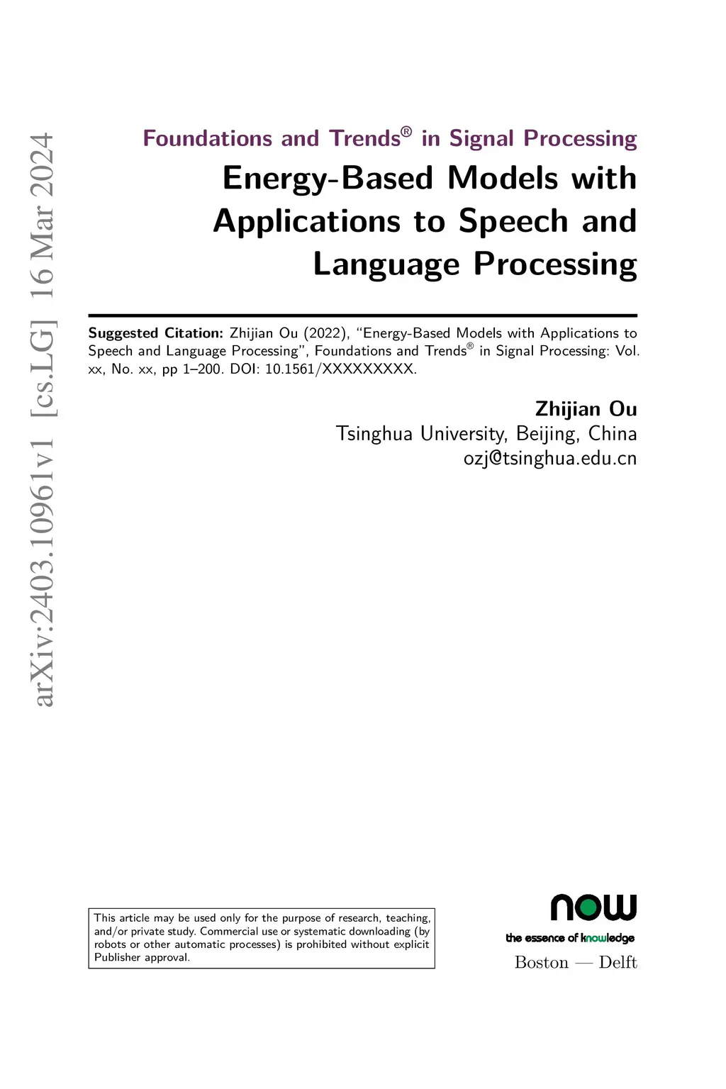 Energy-Based Models (EBMs) are an important class of probabilistic models, also known as random fields and undirected graphical models. EBMs are un-normalized and thus radically different from other popular self-normalized probabilistic models such as hidden Markov models (HMMs), autoregressive models, generative adversarial nets (GANs) and variational auto-encoders (VAEs). Over the past years, EBMs have attracted increasing interest not only from the core machine learning community, but also from application domains such as speech, vision, natural language processing (NLP) and so on, due to significant theoretical and algorithmic progress. The sequential nature of speech and language also presents special challenges and needs a different treatment from processing fix-dimensional data (e.g., images). Therefore, the purpose of this monograph is to present a systematic introduction to energy-based models, including both algorithmic progress and applications in speech and language processing. First, the basics of EBMs are introduced, including classic models, recent models parameterized by neural networks, sampling methods, and various learning methods from the classic learning algorithms to the most advanced ones. Then, the application of EBMs in three different scenarios is presented, i.e., for modeling marginal, conditional and joint distributions, respectively. 1) EBMs for sequential data with applications in language modeling, where the main focus is on the marginal distribution of a sequence itself; 2) EBMs for modeling conditional distributions of target sequences given observation sequences, with applications in speech recognition, sequence labeling and text generation; 3) EBMs for modeling joint distributions of both sequences of observations and targets, and their applications in semi-supervised learning and calibrated natural language understanding.