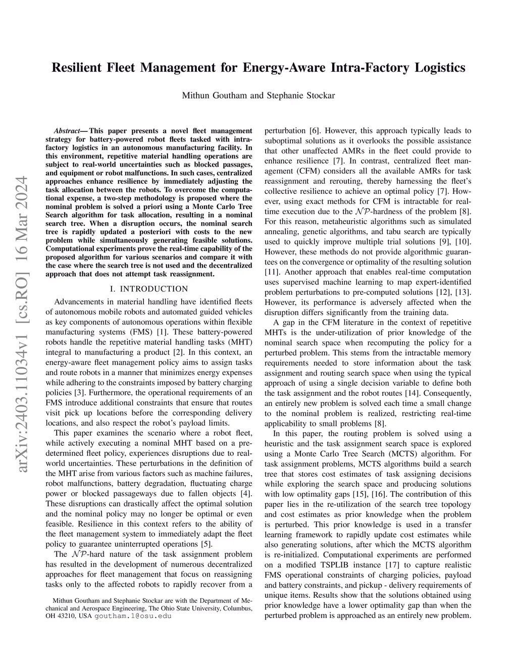 Resilient Fleet Management for Energy-Aware Intra-Factory Logistics