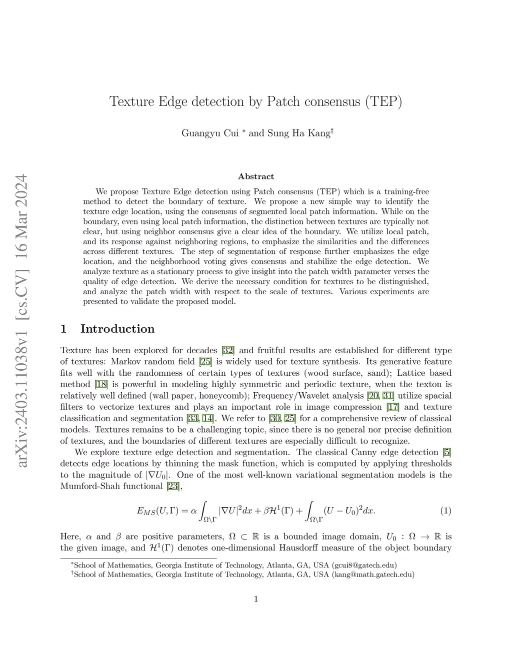 We propose Texture Edge detection using Patch consensus (TEP) which is a training-free method to detect the boundary of texture. We propose a new simple way to identify the texture edge location, using the consensus of segmented local patch information. While on the boundary, even using local patch information, the distinction between textures are typically not clear, but using neighbor consensus give a clear idea of the boundary. We utilize local patch, and its response against neighboring regions, to emphasize the similarities and the differences across different textures. The step of segmentation of response further emphasizes the edge location, and the neighborhood voting gives consensus and stabilize the edge detection. We analyze texture as a stationary process to give insight into the patch width parameter verses the quality of edge detection. We derive the necessary condition for textures to be distinguished, and analyze the patch width with respect to the scale of textures. Various experiments are presented to validate the proposed model.