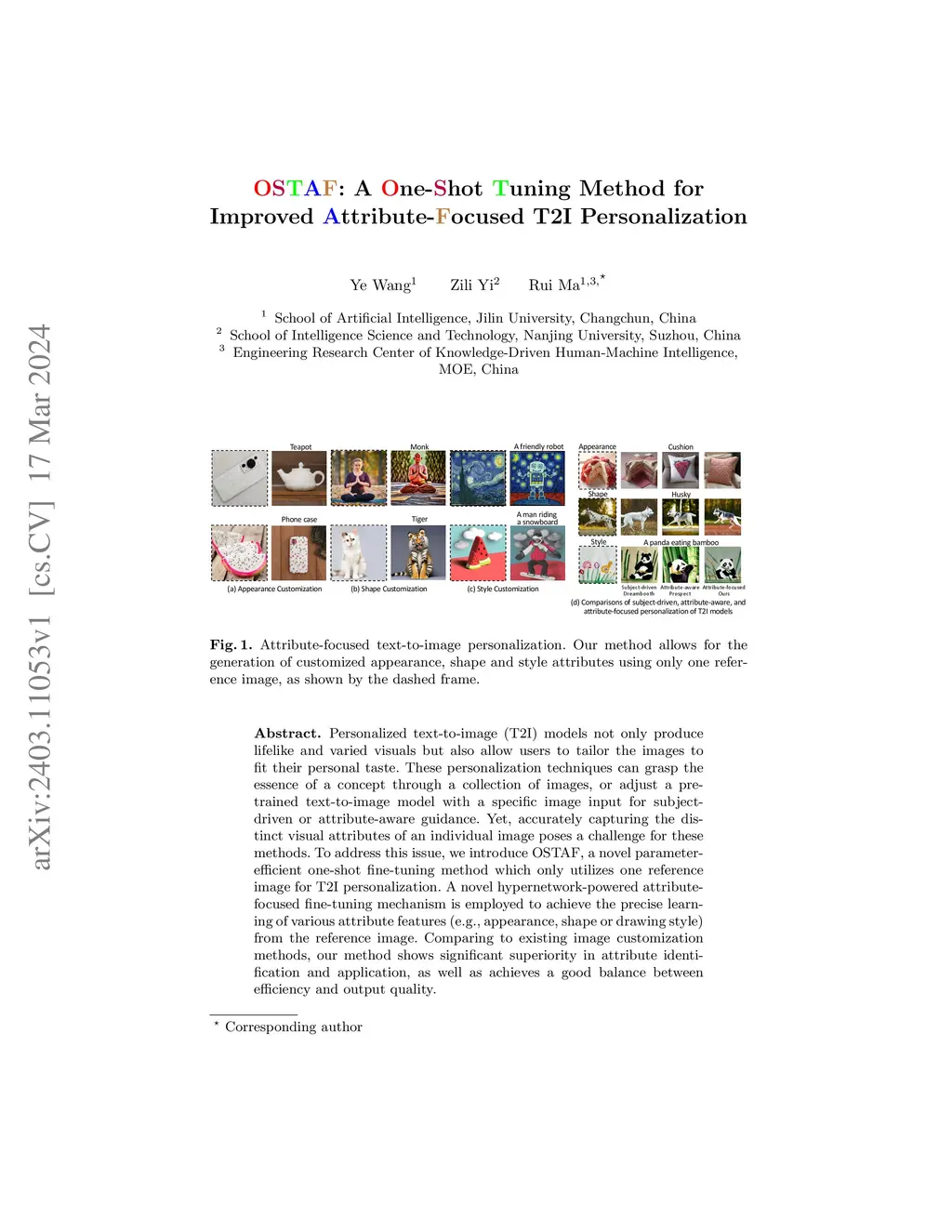 Personalized text-to-image (T2I) models not only produce lifelike and varied visuals but also allow users to tailor the images to fit their personal taste. These personalization techniques can grasp the essence of a concept through a collection of images, or adjust a pre-trained text-to-image model with a specific image input for subject-driven or attribute-aware guidance. Yet, accurately capturing the distinct visual attributes of an individual image poses a challenge for these methods. To address this issue, we introduce OSTAF, a novel parameter-efficient one-shot fine-tuning method which only utilizes one reference image for T2I personalization. A novel hypernetwork-powered attribute-focused fine-tuning mechanism is employed to achieve the precise learning of various attribute features (e.g., appearance, shape or drawing style) from the reference image. Comparing to existing image customization methods, our method shows significant superiority in attribute identification and application, as well as achieves a good balance between efficiency and output quality.