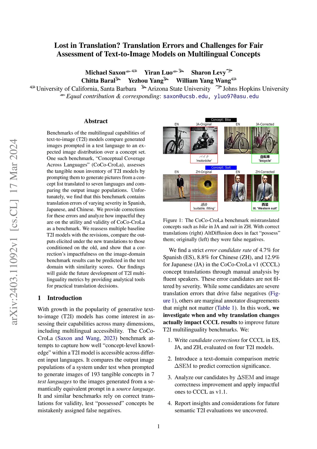Benchmarks of the multilingual capabilities of text-to-image (T2I) models compare generated images prompted in a test language to an expected image distribution over a concept set. One such benchmark, "Conceptual Coverage Across Languages" (CoCo-CroLa), assesses the tangible noun inventory of T2I models by prompting them to generate pictures from a concept list translated to seven languages and comparing the output image populations. Unfortunately, we find that this benchmark contains translation errors of varying severity in Spanish, Japanese, and Chinese. We provide corrections for these errors and analyze how impactful they are on the utility and validity of CoCo-CroLa as a benchmark. We reassess multiple baseline T2I models with the revisions, compare the outputs elicited under the new translations to those conditioned on the old, and show that a correction's impactfulness on the image-domain benchmark results can be predicted in the text domain with similarity scores. Our findings will guide the future development of T2I multilinguality metrics by providing analytical tools for practical translation decisions.