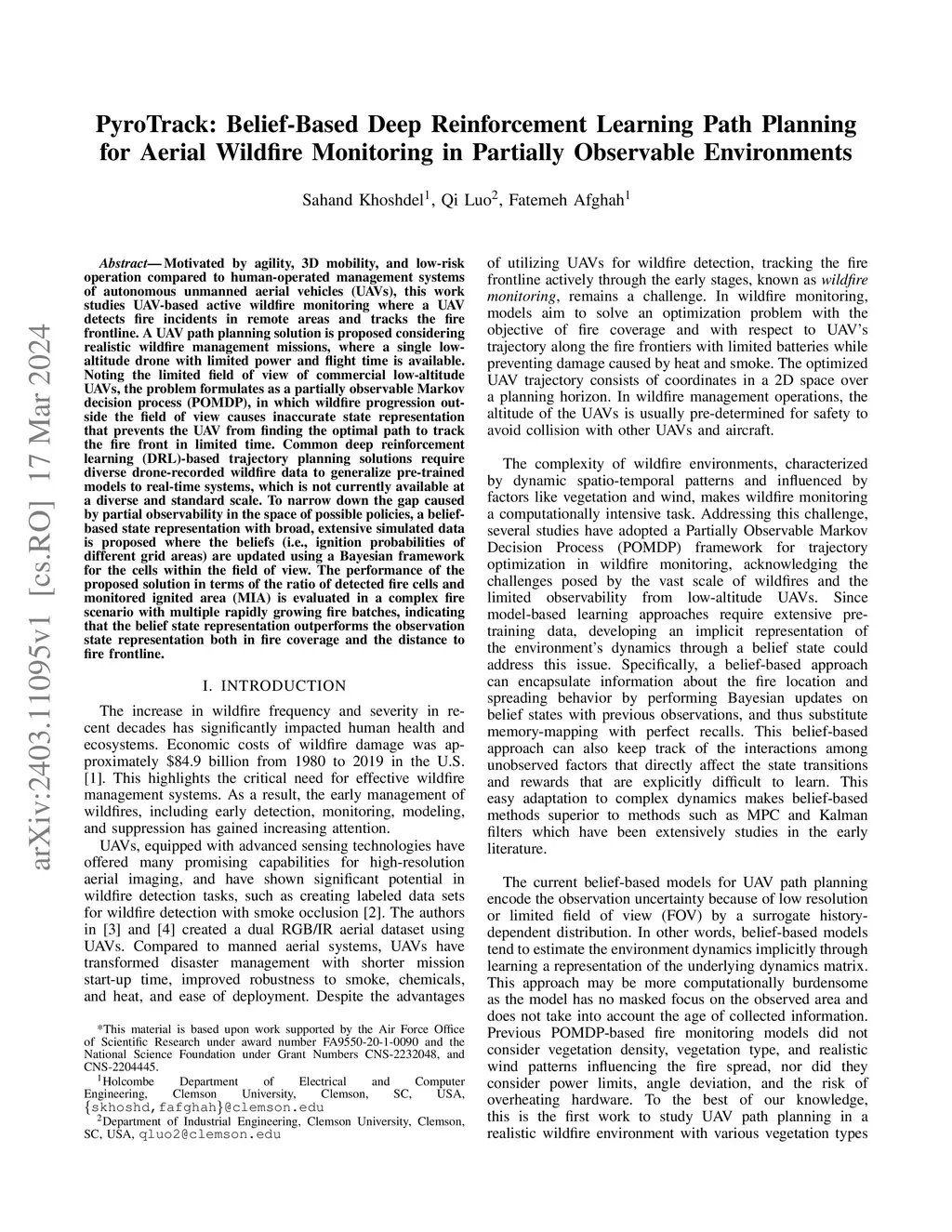 PyroTrack: Belief-Based Deep Reinforcement Learning Path Planning for