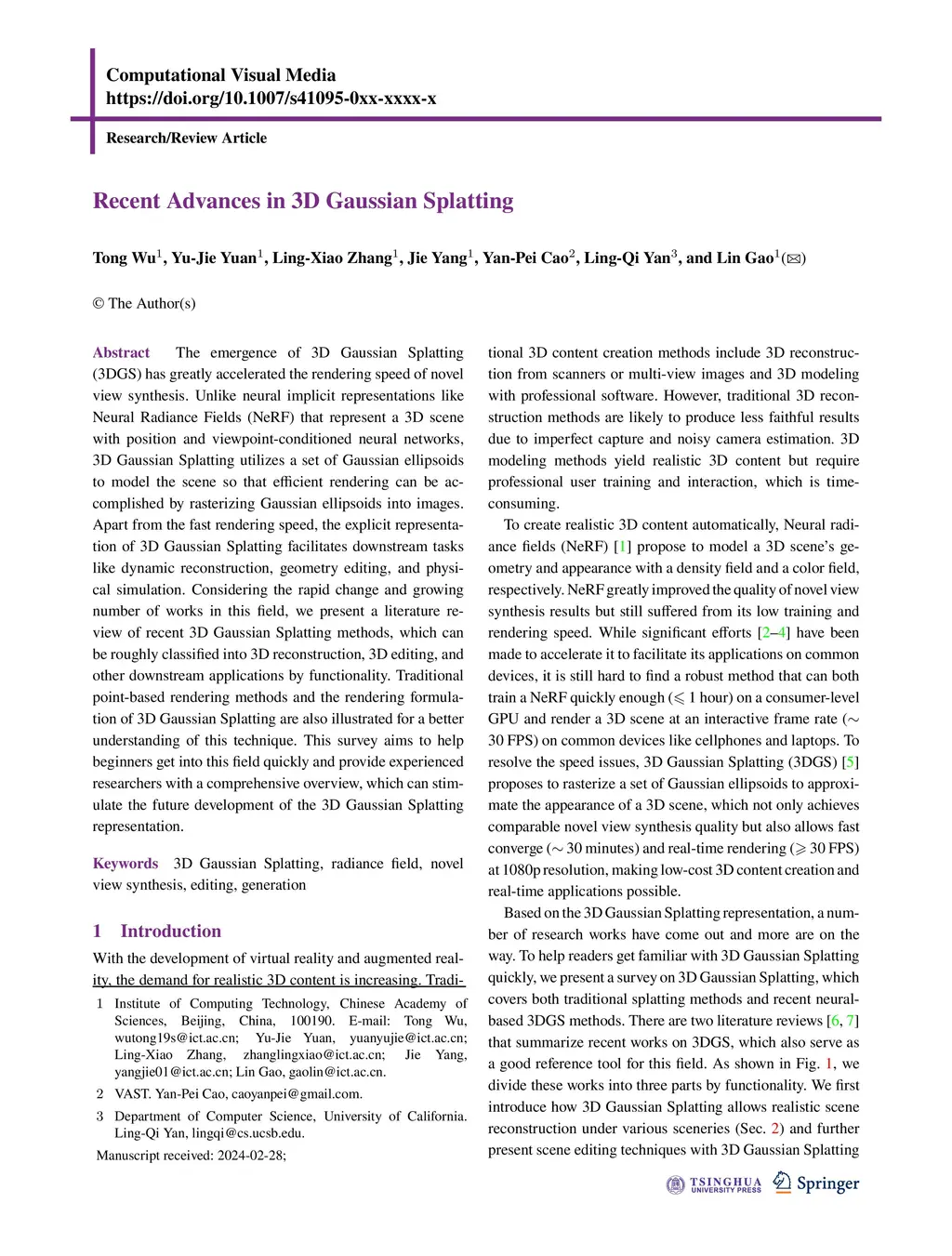 Recent Advances in 3D Gaussian Splatting