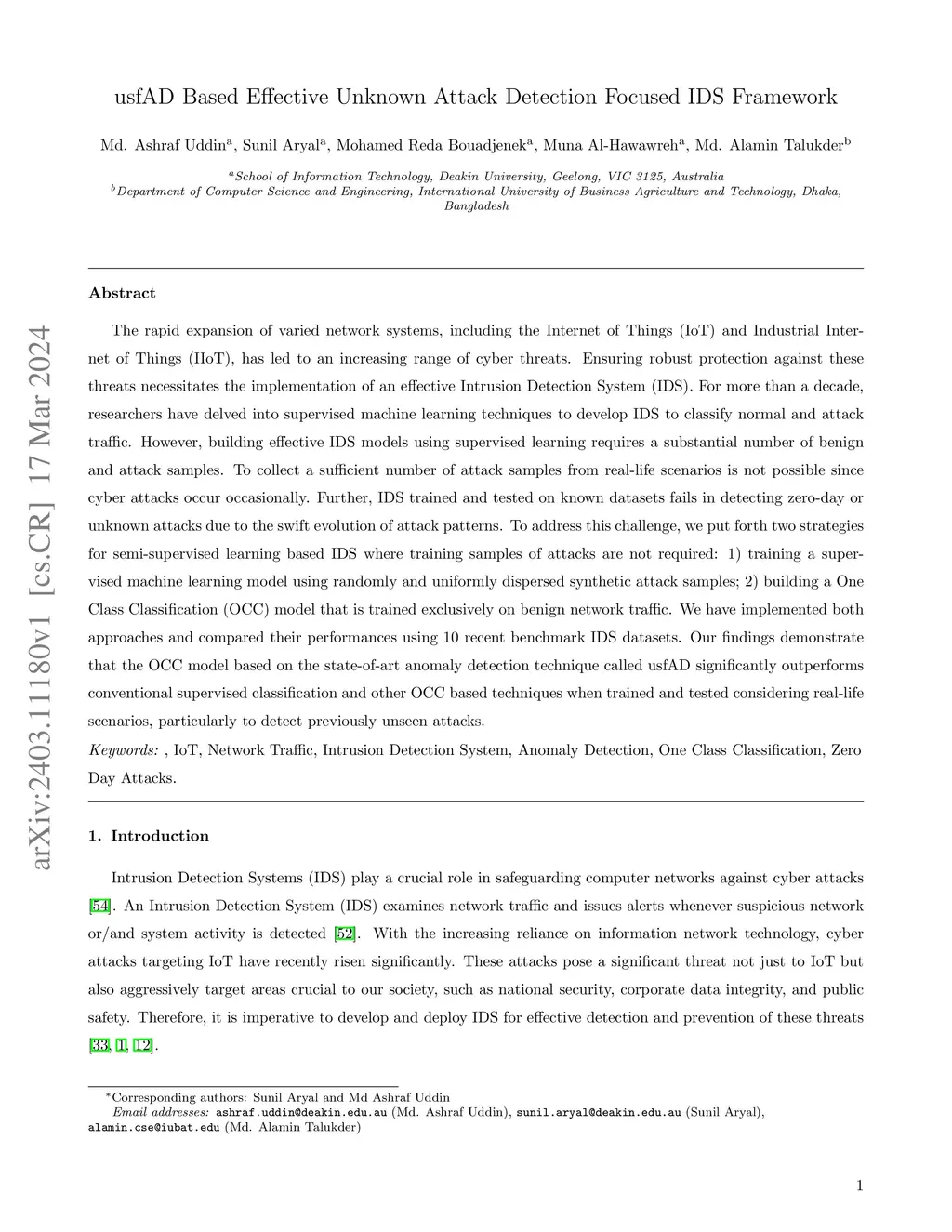 usfAD Based Effective Unknown Attack Detection Focused IDS Framework