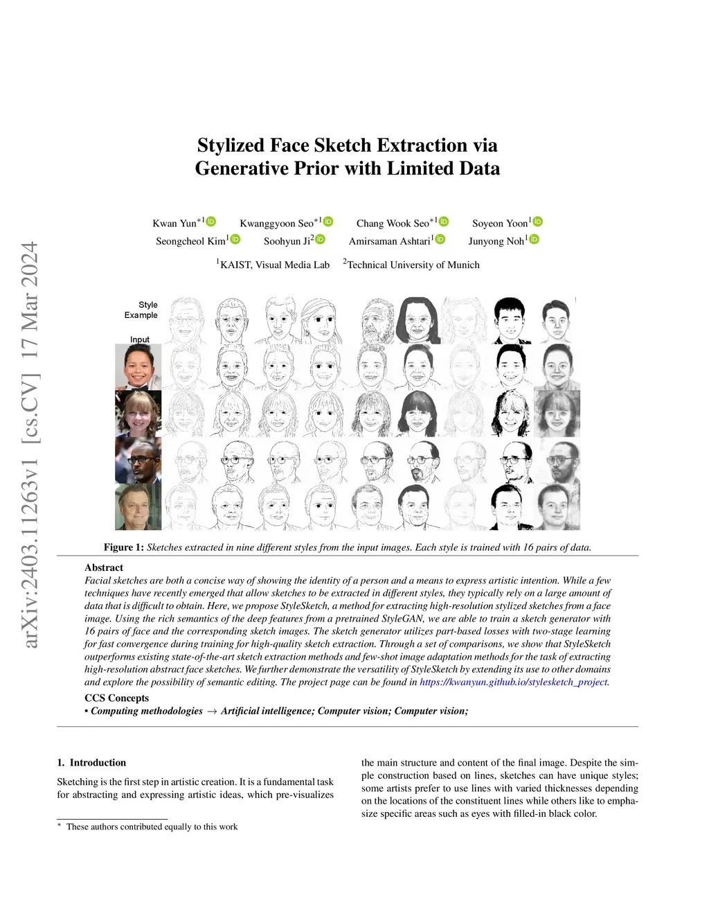 Stylized Face Sketch Extraction via Generative Prior with Limited Data