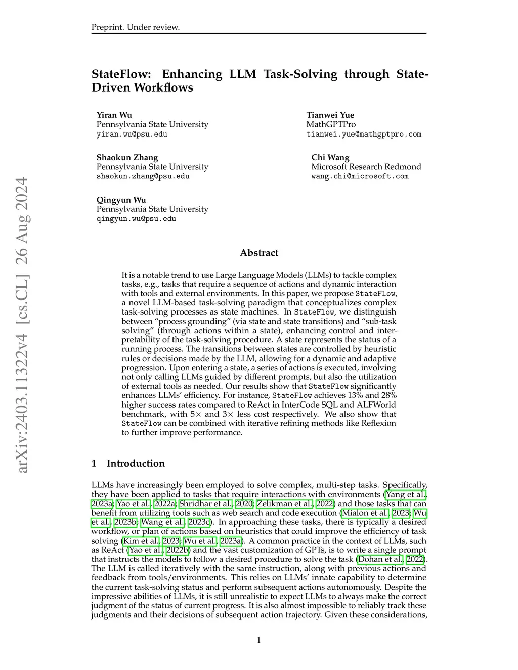 StateFlow: Enhancing LLM Task-Solving through State-Driven Workflows