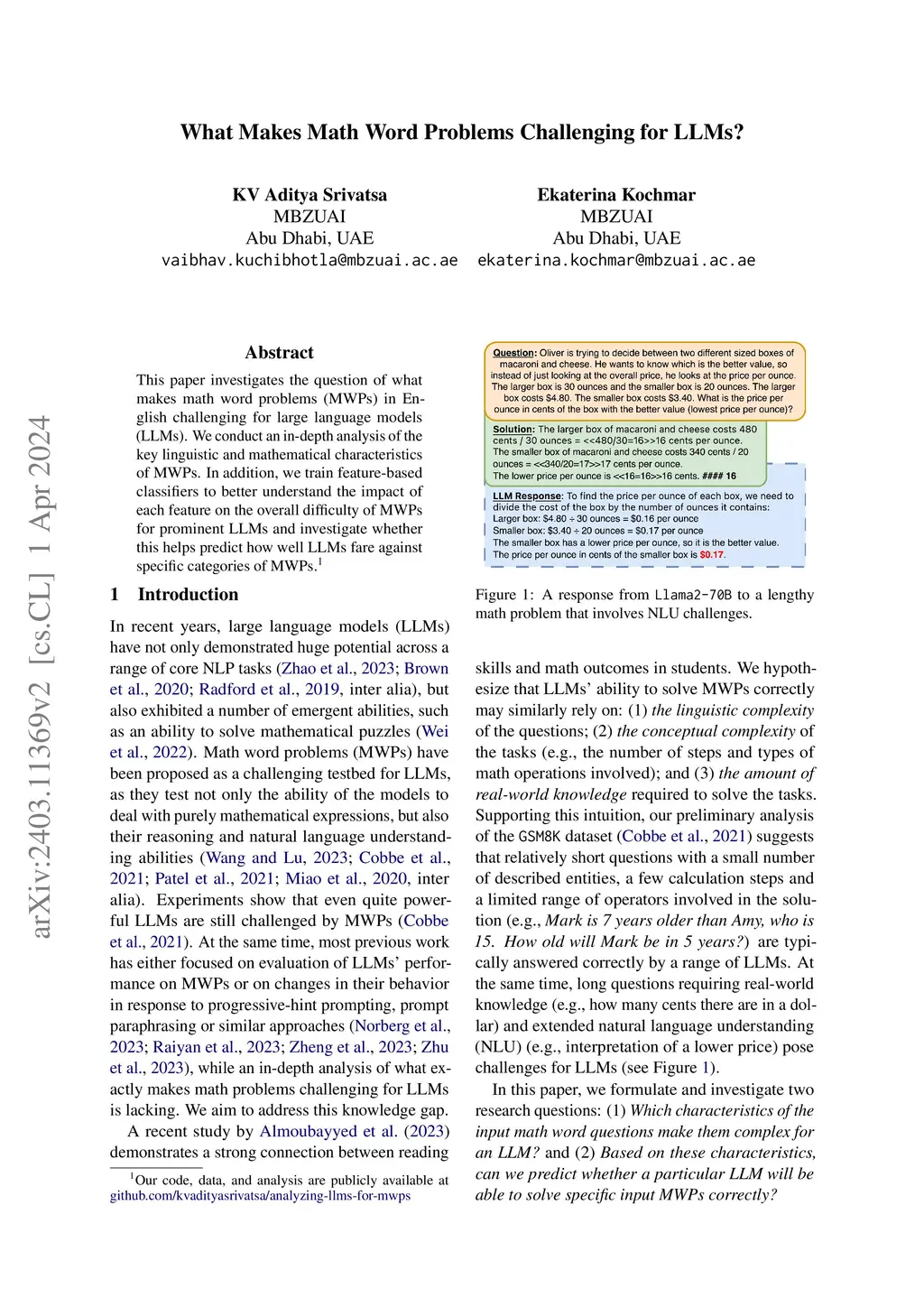 This paper investigates the question of what makes math word problems (MWPs) in English challenging for large language models (LLMs). We conduct an in-depth analysis of the key linguistic and mathematical characteristics of MWPs. In addition, we train feature-based classifiers to better understand the impact of each feature on the overall difficulty of MWPs for prominent LLMs and investigate whether this helps predict how well LLMs fare against specific categories of MWPs.