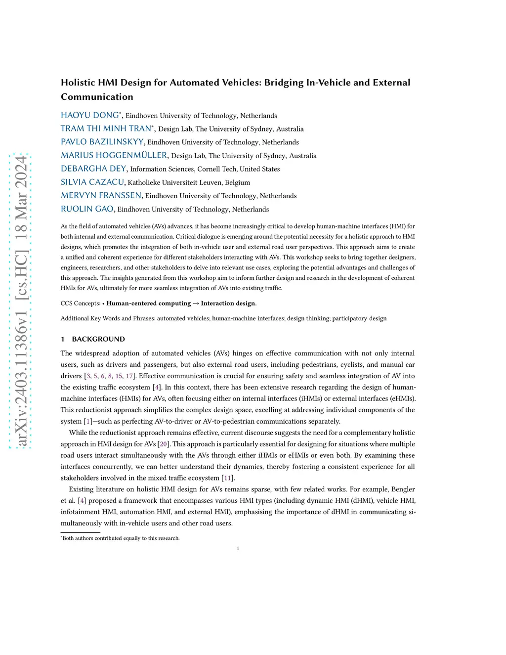 Holistic HMI Design for Automated Vehicles: Bridging In-Vehicle and