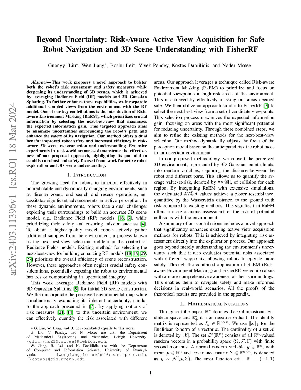 Beyond Uncertainty: Risk-Aware Active View Acquisition for Safe Robot Navigation and 3D Scene Understanding with FisherRF