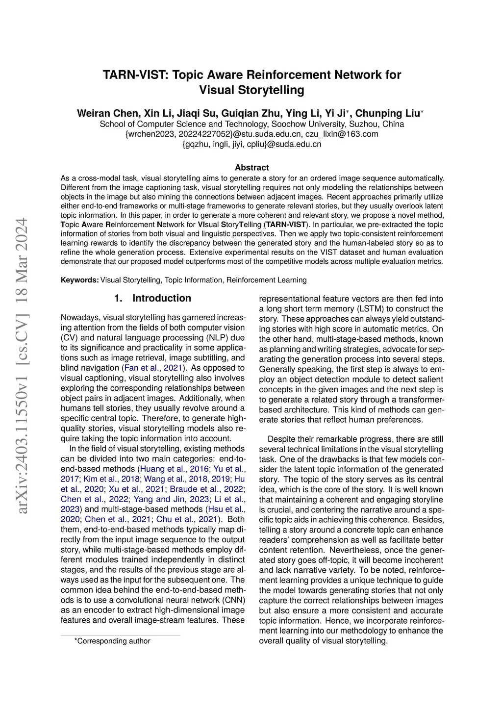 TARN-VIST: Topic Aware Reinforcement Network for Visual Storytelling