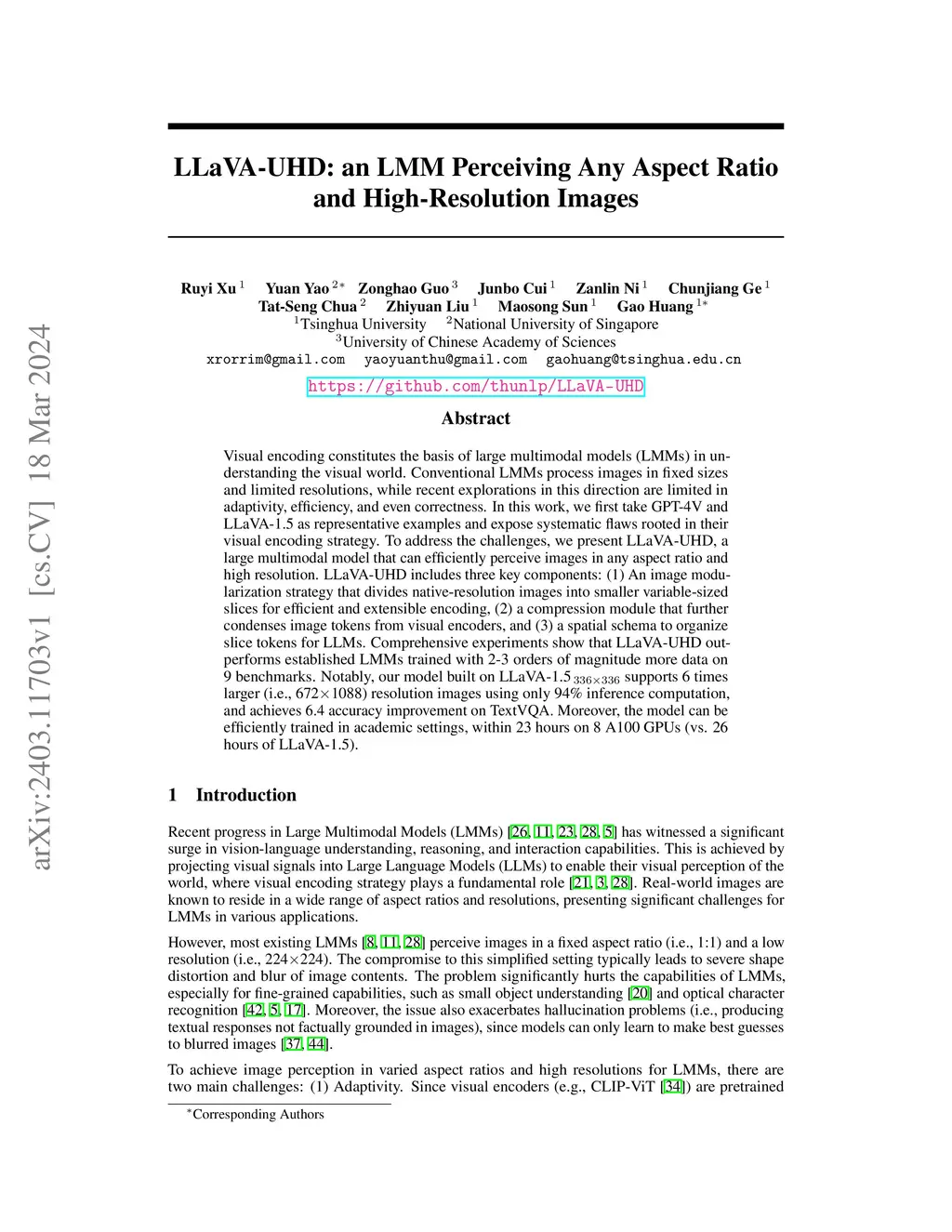 LLaVA-UHD: an LMM Perceiving Any Aspect Ratio and High-Resolution Images
