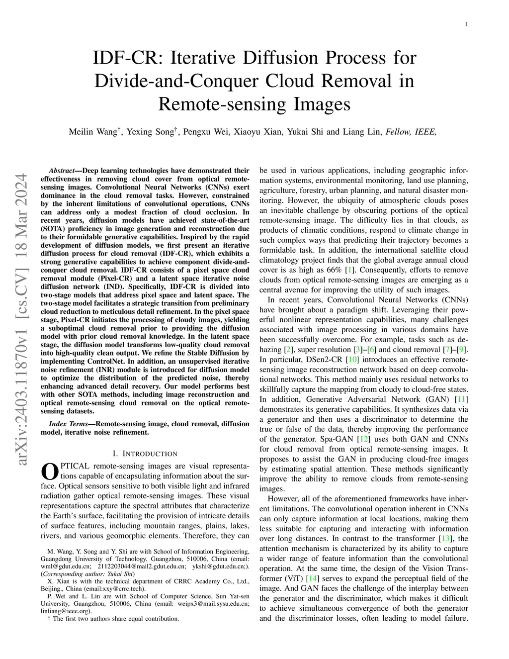 IDF-CR: Iterative Diffusion Process for Divide-and-Conquer Cloud Removal