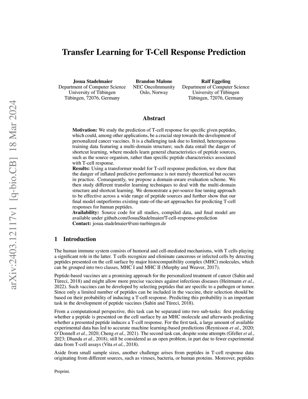 Transfer Learning for T-Cell Response Prediction
