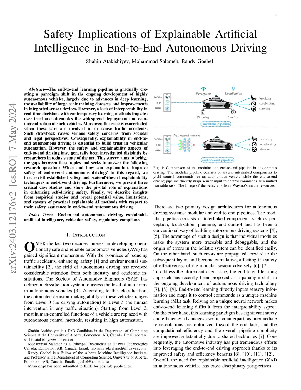 Safety Implications of Explainable Artificial Intelligence in End-to-End Autonomous Driving
