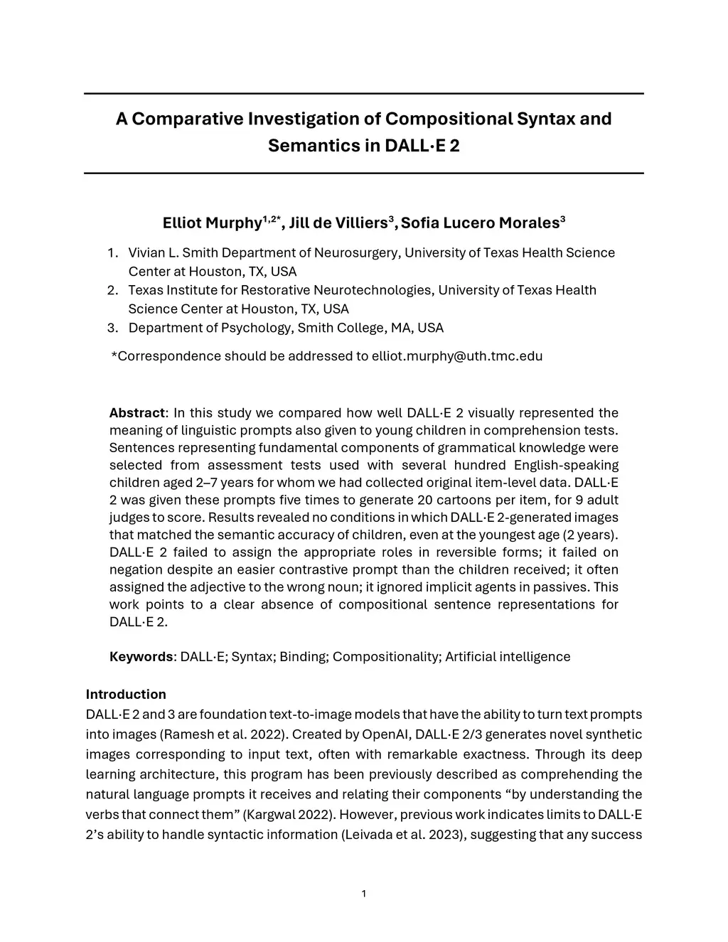In this study we compared how well DALL-E 2 visually represented the meaning of linguistic prompts also given to young children in comprehension tests. Sentences representing fundamental components of grammatical knowledge were selected from assessment tests used with several hundred English-speaking children aged 2-7 years for whom we had collected original item-level data. DALL-E 2 was given these prompts five times to generate 20 cartoons per item, for 9 adult judges to score. Results revealed no conditions in which DALL-E 2-generated images that matched the semantic accuracy of children, even at the youngest age (2 years). DALL-E 2 failed to assign the appropriate roles in reversible forms; it failed on negation despite an easier contrastive prompt than the children received; it often assigned the adjective to the wrong noun; it ignored implicit agents in passives. This work points to a clear absence of compositional sentence representations for DALL-E 2.