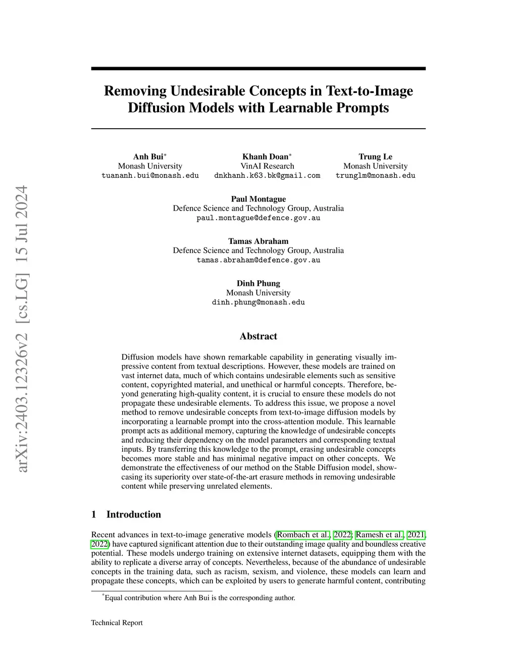 Diffusion models have demonstrated remarkable capability in generating high-quality visual content from textual descriptions. However, since these models are trained on large-scale internet data, they inevitably learn undesirable concepts, such as sensitive content, copyrighted material, and harmful or unethical elements. While previous works focus on permanently removing such concepts, this approach is often impractical, as it can degrade model performance and lead to irreversible loss of information. In this work, we introduce a novel concept-hiding approach that makes unwanted concepts inaccessible to public users while allowing controlled recovery when needed. Instead of erasing knowledge from the model entirely, we incorporate a learnable prompt into the cross-attention module, acting as a secure memory that suppresses the generation of hidden concepts unless a secret key is provided. This enables flexible access control -- ensuring that undesirable content cannot be easily generated while preserving the option to reinstate it under restricted conditions. Our method introduces a new paradigm where concept suppression and controlled recovery coexist, which was not feasible in prior works. We validate its effectiveness on the Stable Diffusion model, demonstrating that hiding concepts mitigate the risks of permanent removal while maintaining the model's overall capability.